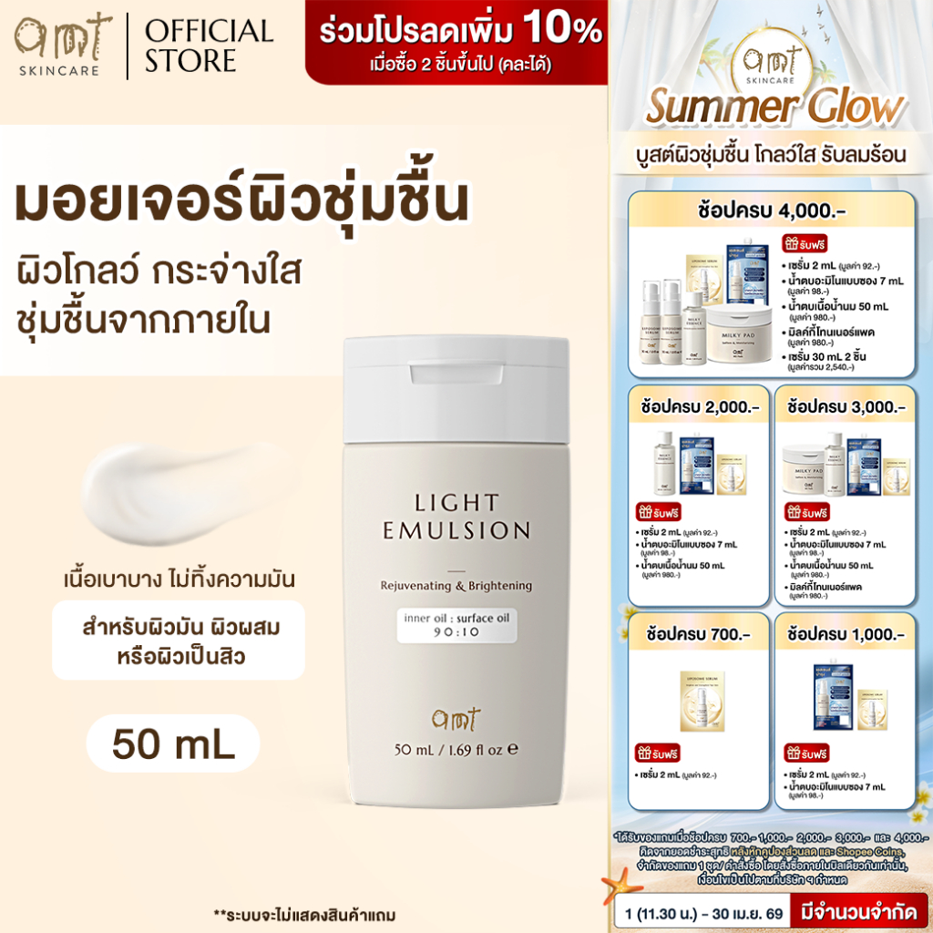AMT Light Emulsion 50 mL - มอยเจอร์ไรเซอร์เติมความชุ่มชื้น ผิวโกลว์ นุ่ม เฟิร์ม สำหรับผิวมัน ผิวผสม ผิวเป็นสิว)