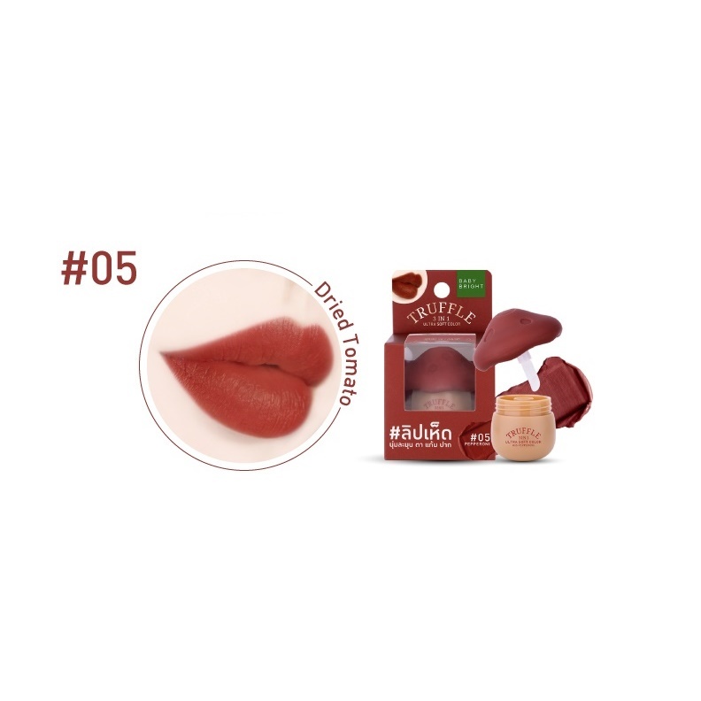เบบี้ไบร์ท ลิปหัวเห็ด ทรัฟเฟิล เนื้อแมทท์ Baby Bright Truffle 3in1 Ultra Soft Color 6g. Lip Tint 3 in 1 ทา ตา แก้ม ปาก