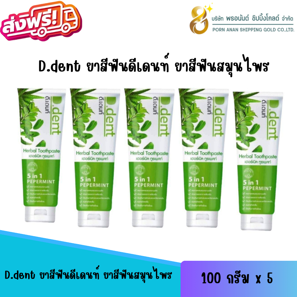📣📣[แพ๊คx5หลอด] D.dent ยาสีฟันดีเดนท์ ยาสีฟันสมุนไพร ลดปัญหากลิ่นปาก ขนาด 100 กรัม📣📣