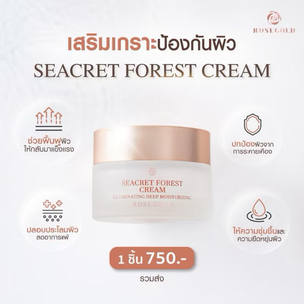 ครีมโรสโกลด์ ลดสิว Rosegold Seacret Forest Cream ครีมน้ำระเบิด เติมความชุ่มชื้น ผิวแข็งแรง