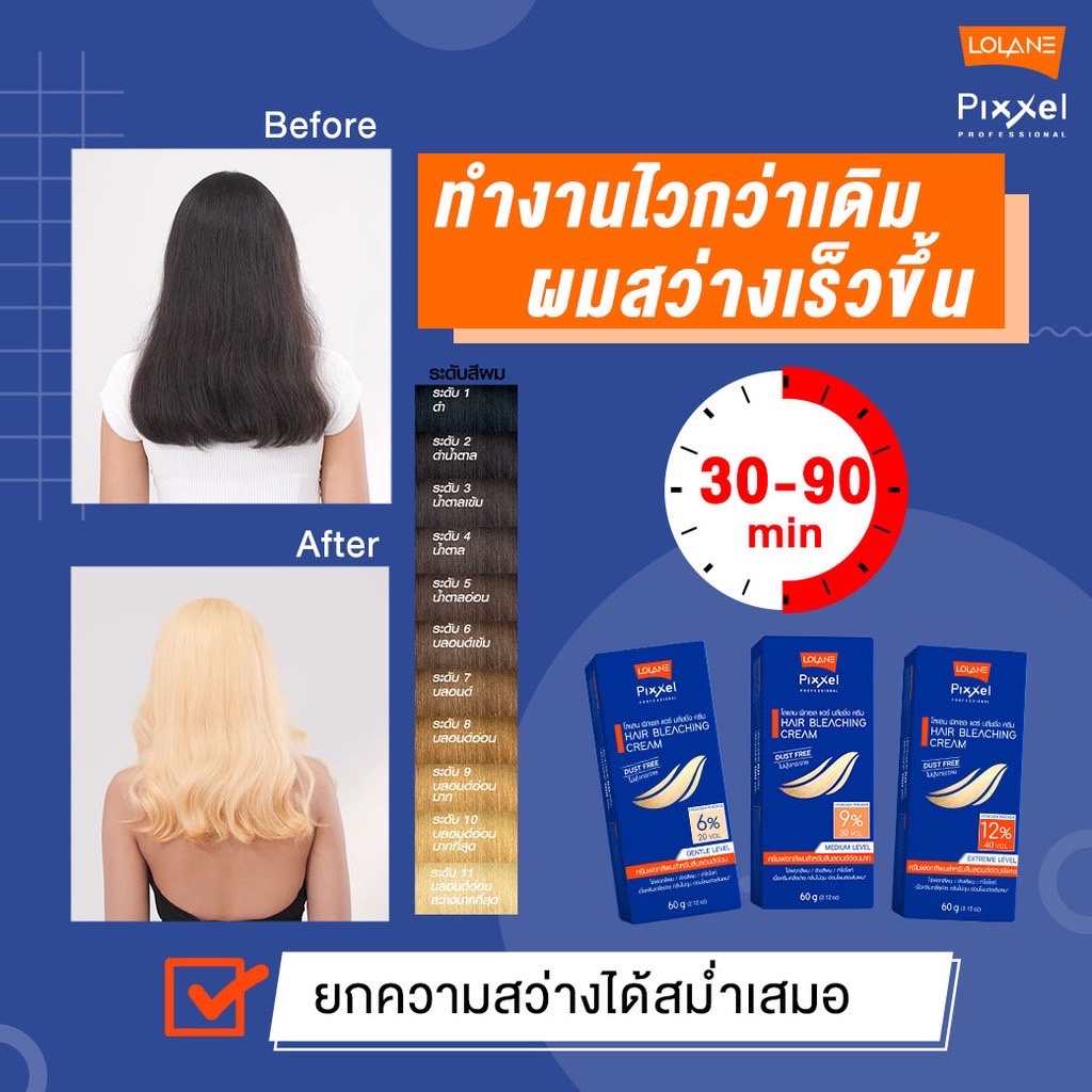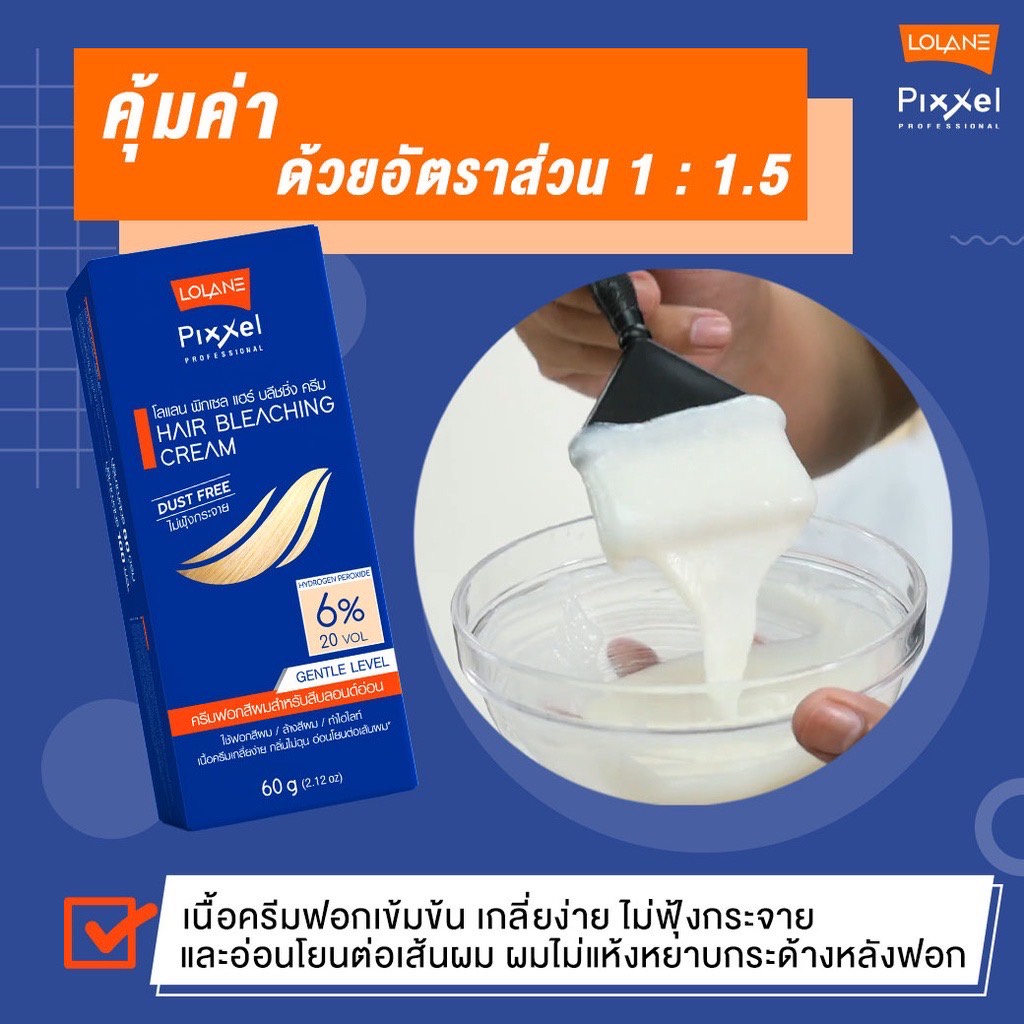 Lolane Pixxel Hair Bleaching Cream โลแลน พิกเซล แฮร์ บลีชชิ่ง ครีม กัดสีผม ครีมฟอกสีผม ฟอกสีผม ปรับพื้นผมสว่าง [60 ml]