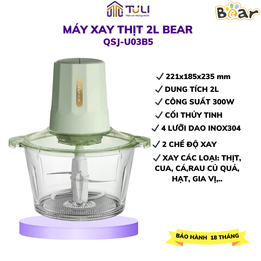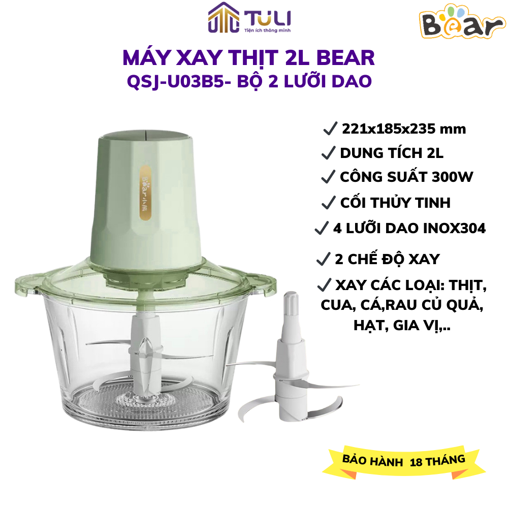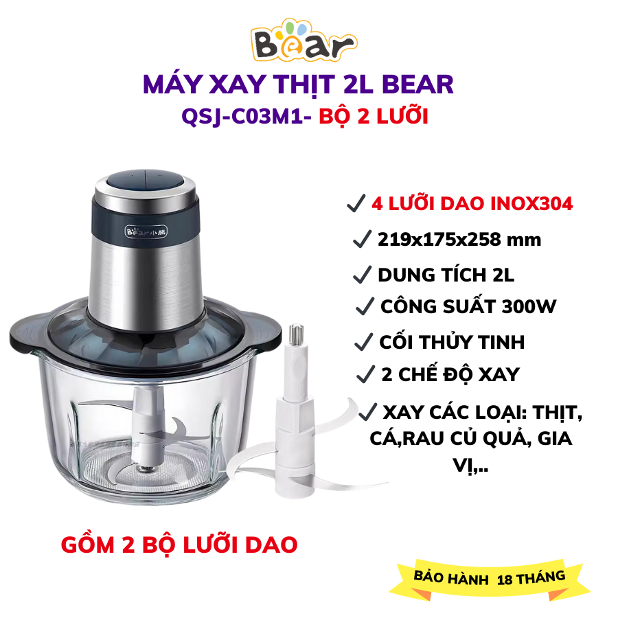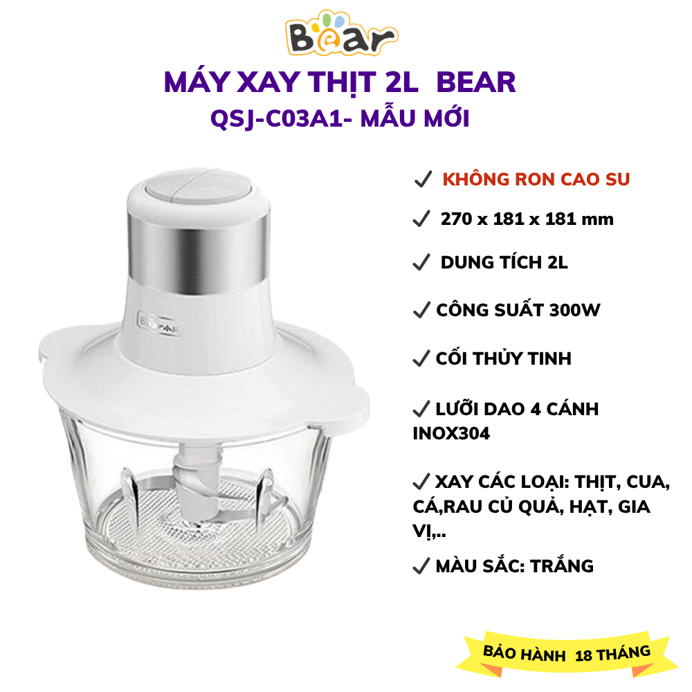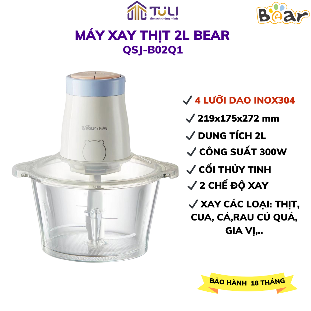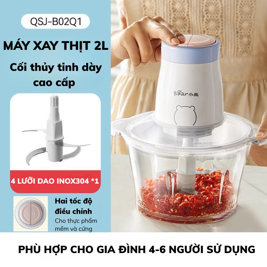 Bear QSJ-B02Q1 2L เครื่องบดเนื้อมัลติฟังก์ชั่น, ใบมีดสแตนเลสคม 4 ใบ, น้ําซุปข้นผักและน้ําแข็ง,