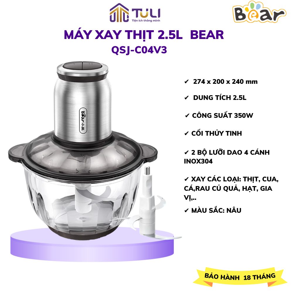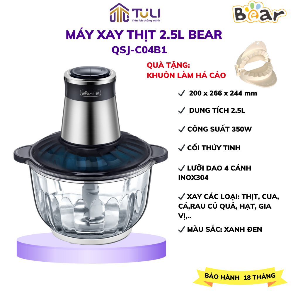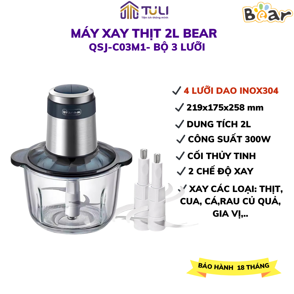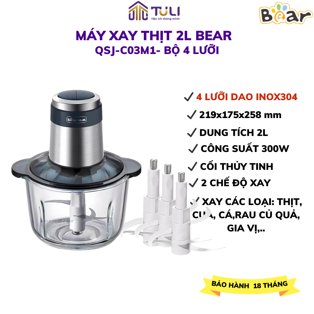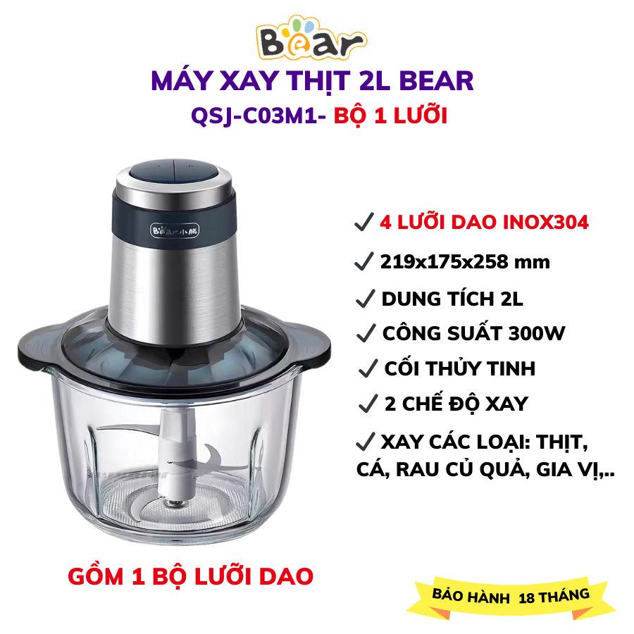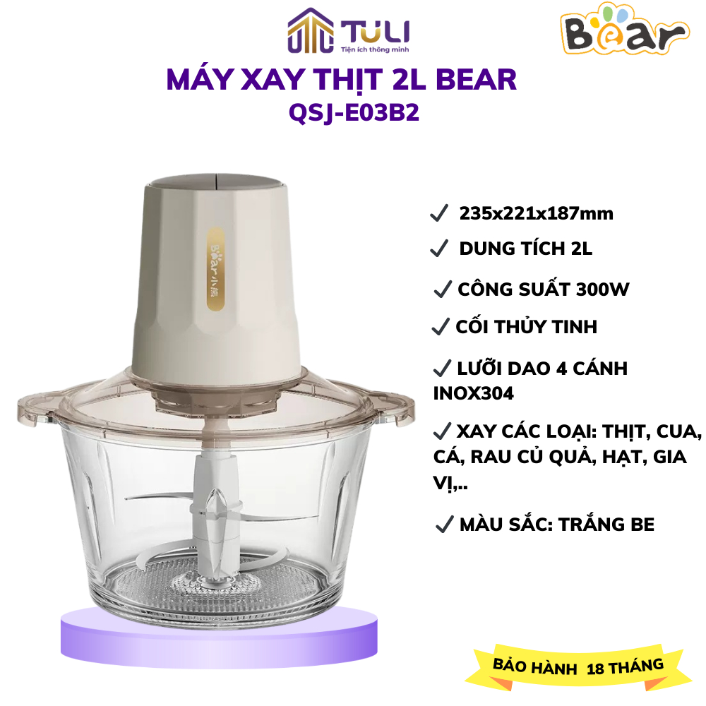 Bear QSJ-B02Q1 2L เครื่องบดเนื้อมัลติฟังก์ชั่น, ใบมีดสแตนเลสคม 4 ใบ, น้ําซุปข้นผักและน้ําแข็ง,