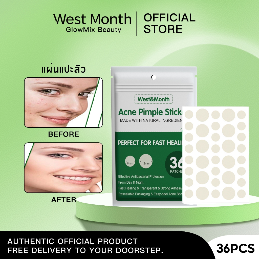 West&Month แผ่นแปะสิว แผ่นดูดซับ ชนิดมองไม่เห็น รักษาสิว บำรุงผิว กันน้ำ ทำความสะอาดอย่างเชี่ยวชาญ