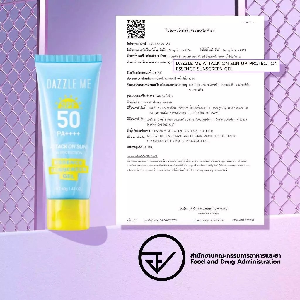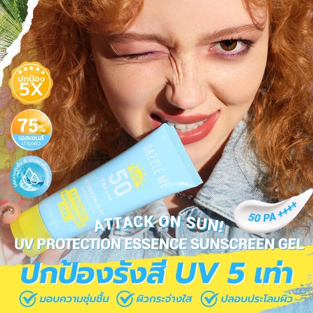 Dazzle Me Attack On Sun UV Protection Essence Sunscreen Gel SPF50 PA++++ 40g. แดซเซิล มี แอทแทค ออน ซัน ยูวี/13433