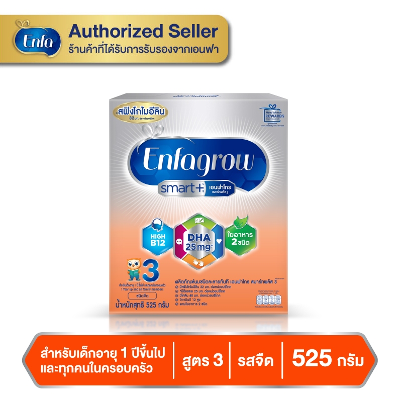 Enfagrow Smart เอนฟา โกร สมาร์ทพลัส นมผง รสจืด สูตร 3 สำหรับเด็ก ขนาด 525 กรัม ( 1 กล่อง )