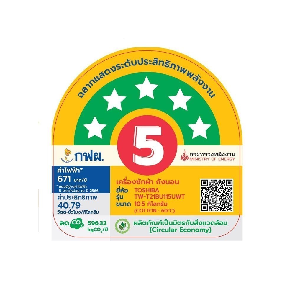 TOSHIBA เครื่องซักผ้าฝาหน้า TW-T21BU115UWT(MG) 10.5 กก. สีเทา อินเวอร์เตอร์ จัดส่งโดย HomePro