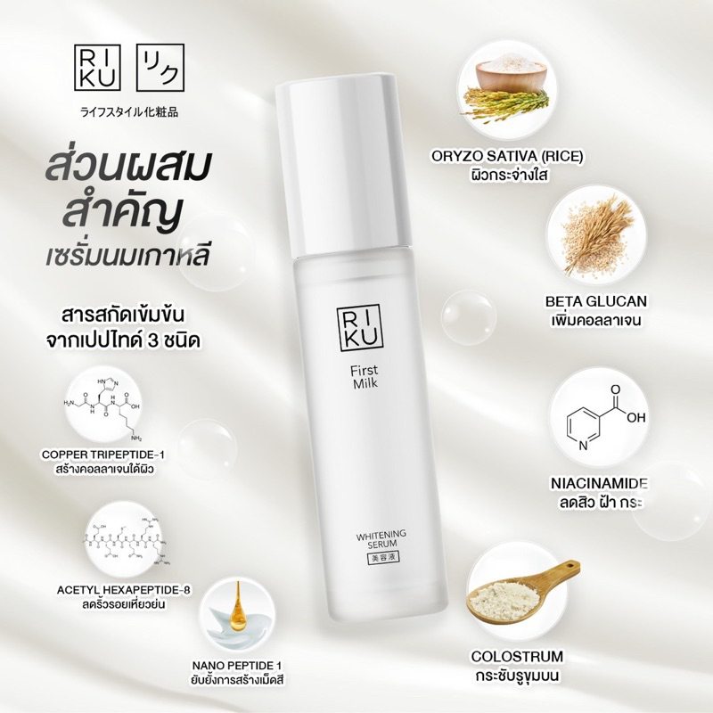 (ส่งเร็วพิเศษ)เซรั่มนม ลดฝ้า จุดด่างดำ Riku first milk whitening serum Korea