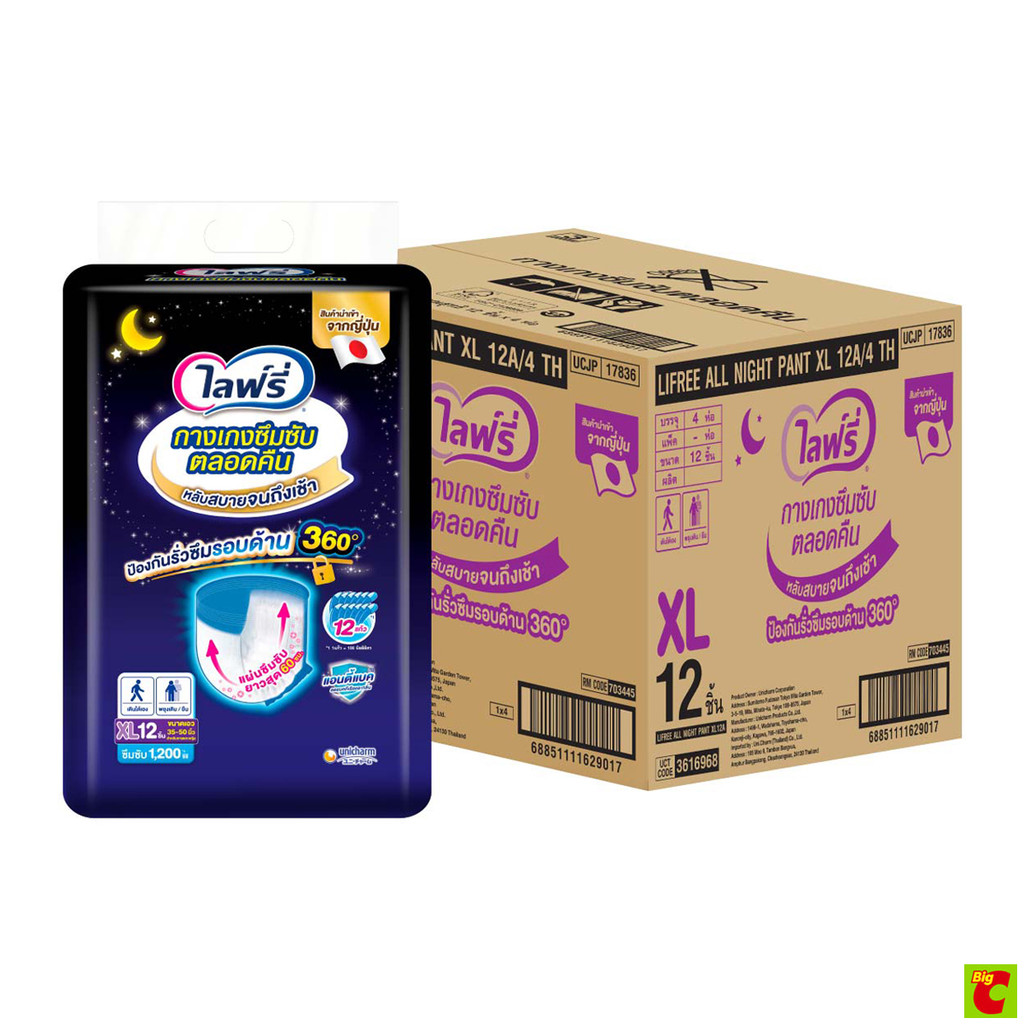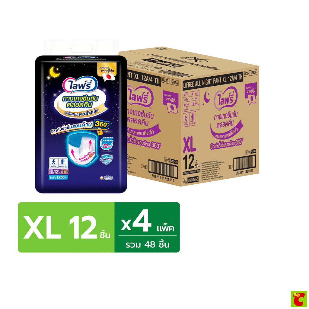 ไลฟ์รี่ กางเกงซึมซับตลอดคืน ขนาด XL 12 ชิ้น