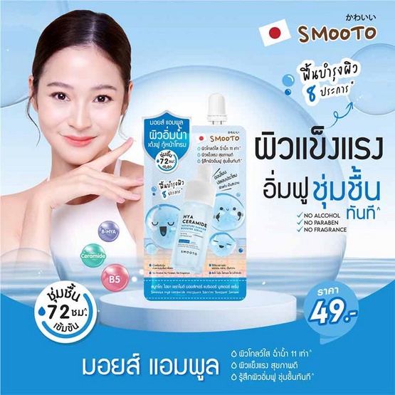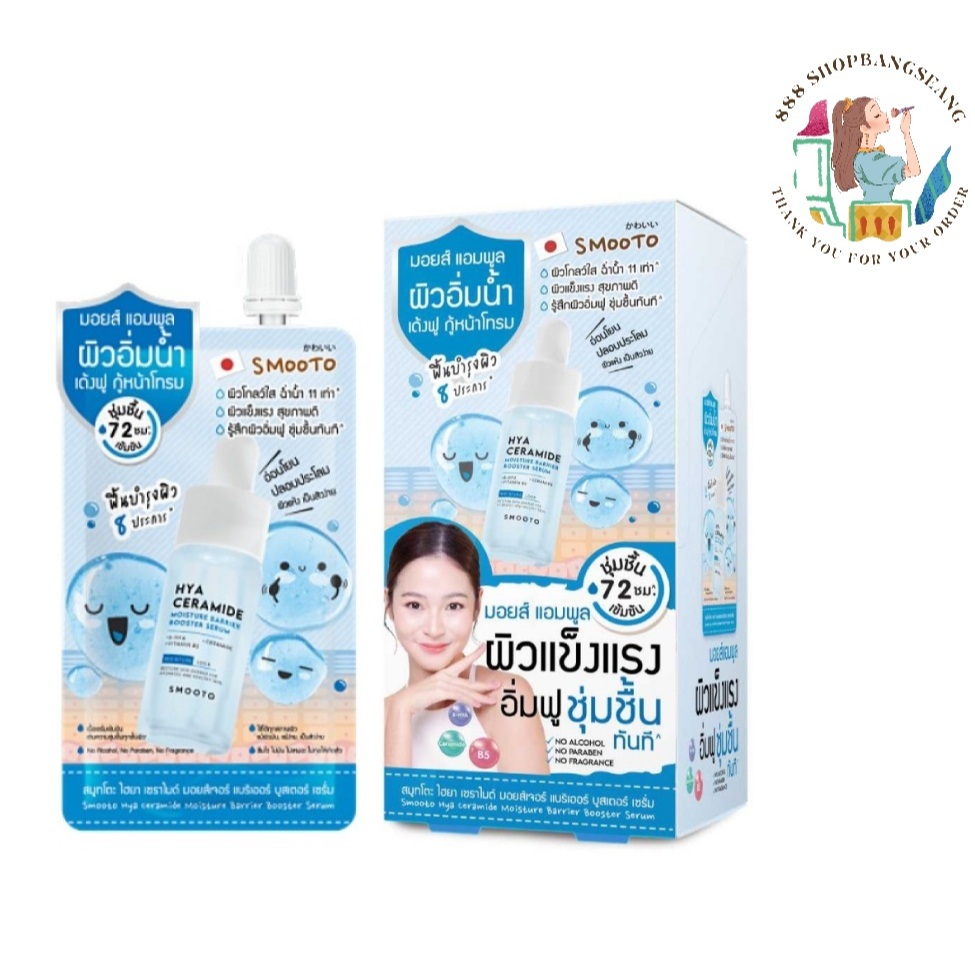 (กล่อง/6ซอง)ครีมซอง สมูทโตะ มอย ส์ แอมพูล 10 กรัม Smooto Hya Ceramide Moisture Barrier Booster Serum