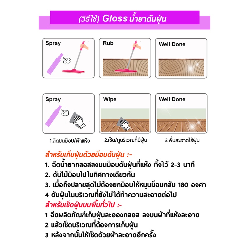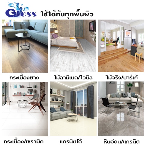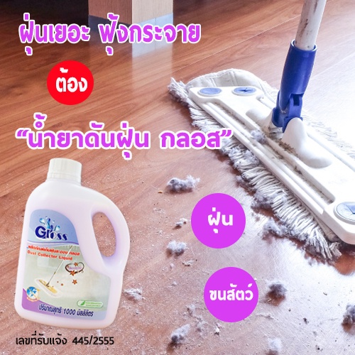 GLOSS น้ำยาดันฝุ่น สูตรเข้มข้น เก็บฝุ่นละออง เคลือบเงาพื้น 1000มล. ทุกพื้นผิวไม่ต้องผสมน้ำ