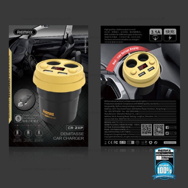 Remax ที่ขยายช่อง เสียบบุหรี่ในรถ พร้อมUSBเสียบสายชาจ