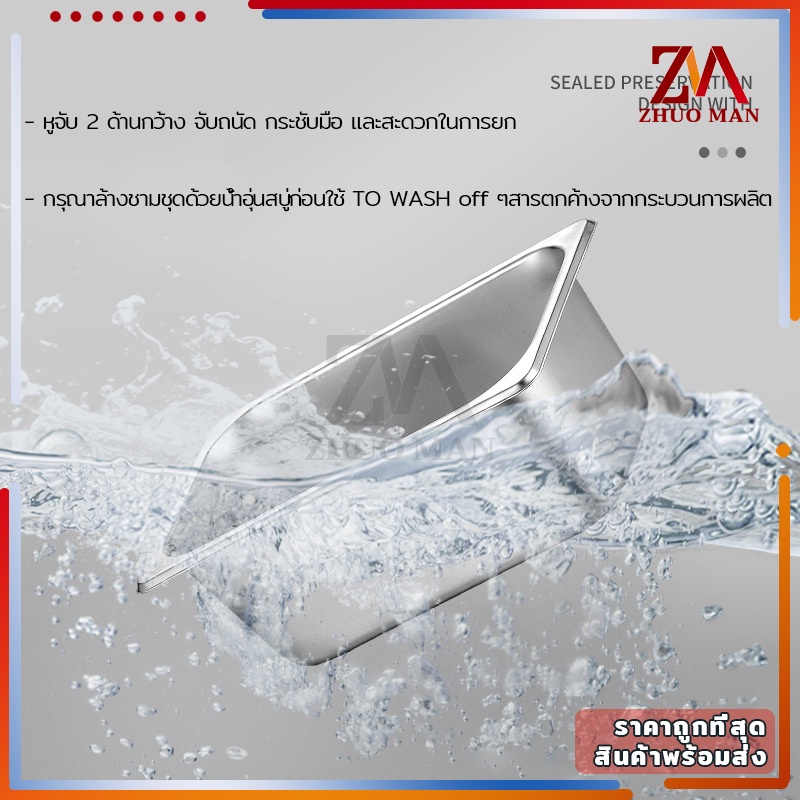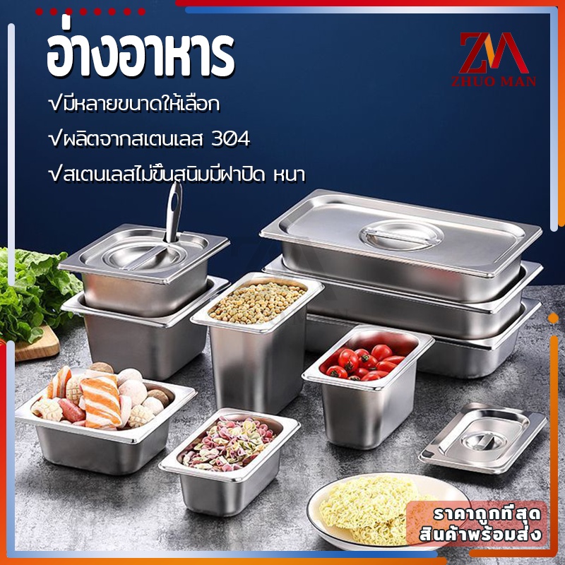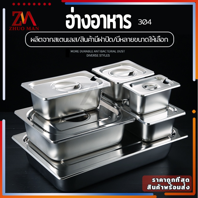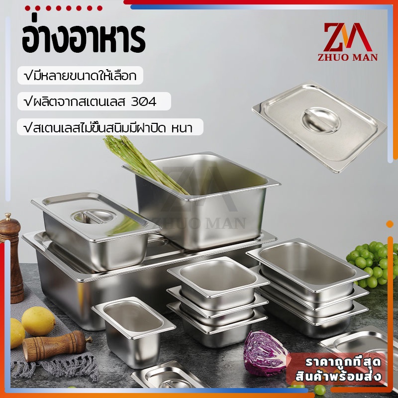 ถาดสแตนเลส ถาดหลุมใส่อาหาร อ่างอาหาร ถาดมีฝา 304สแตนเลส ไม่ขึ้นสนิม ปลอดภัย ทนทานต่อการใช้งาน ลึก10CM มี 3 ขนาด