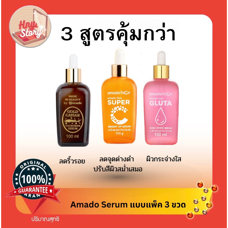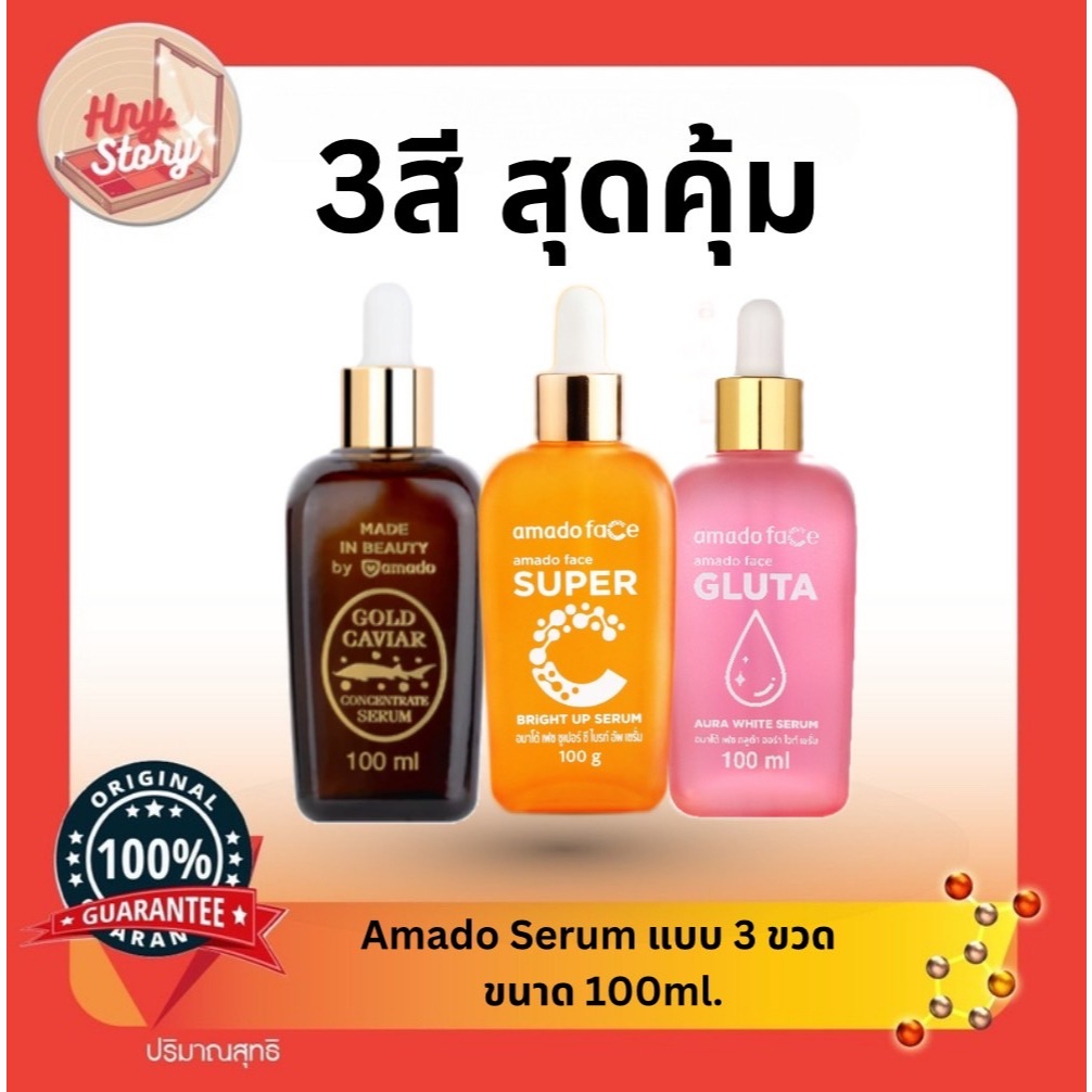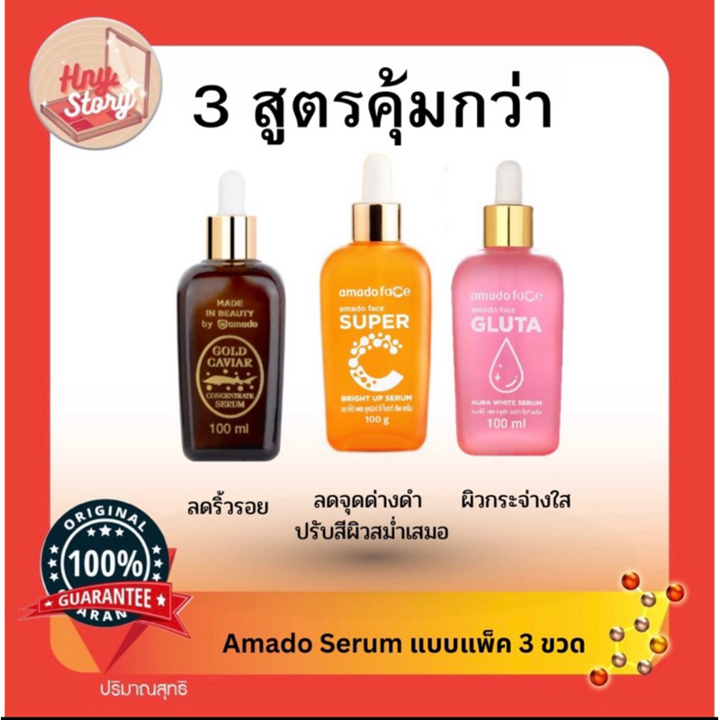 Amado Gold Caviar อมาโด้ โกล์ด คาเวียร์/อมาโด้ ซุปเปอร์ ซี/อมาโด้ กลูต้า เซรั่ม แบบ 3 ขวด