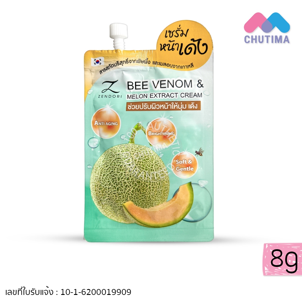 ครีมบำรุงผิวหน้า เนื้อเจล เซนโดริ ครีม Zendori Bee venom & Melon Extract Cream 8g.