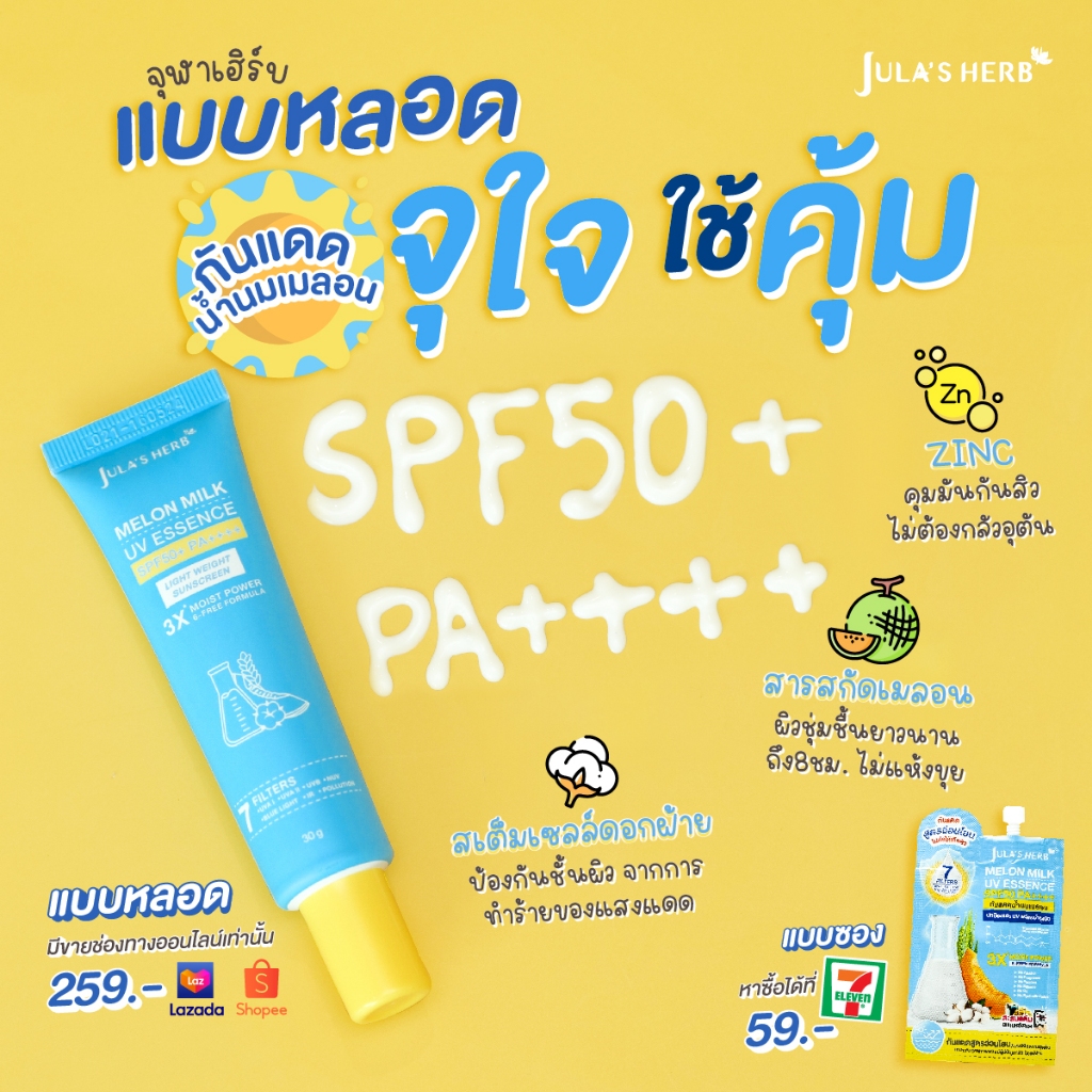 JULA'S HERB Melon Milk UV Essence SPF50+ PA++++ 30g จุฬาเฮิร์บ เมลอน มิลก์ ยูวี เอสเซนส์