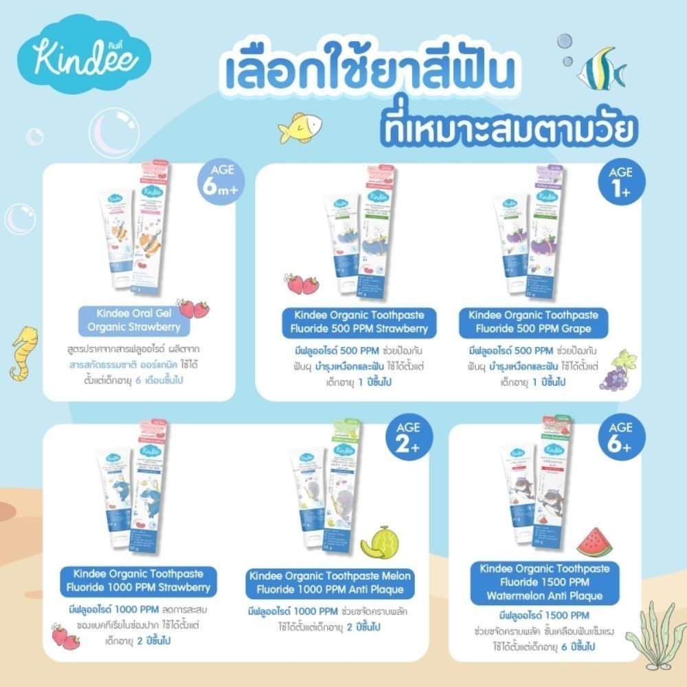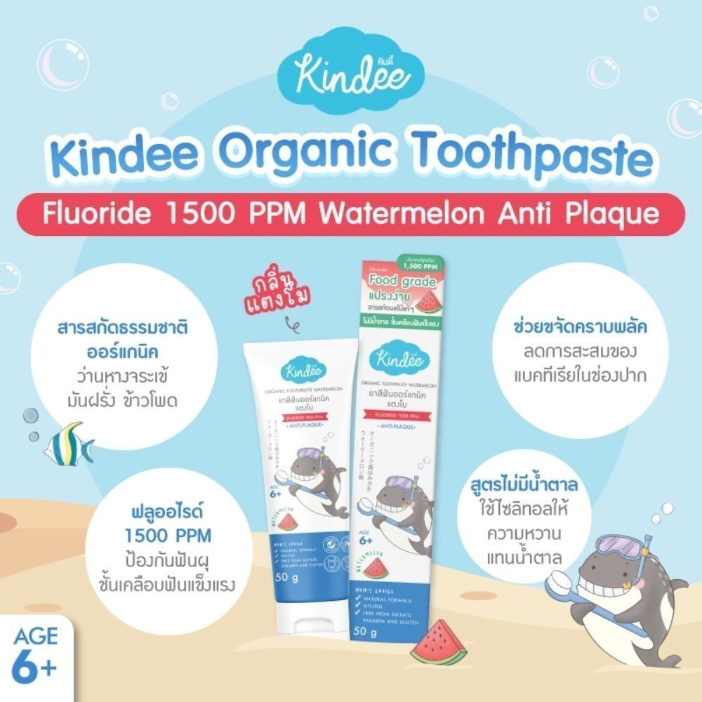 KINDEE Organic Toothpaste Fluoride Watermelon Anti Plaque คินดี้ ยาสีฟันออร์แกนิค ฟลูโอไรด์ กลิ่นแตงโม (50g.)