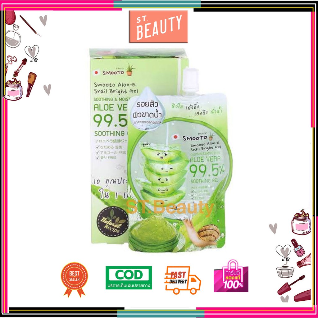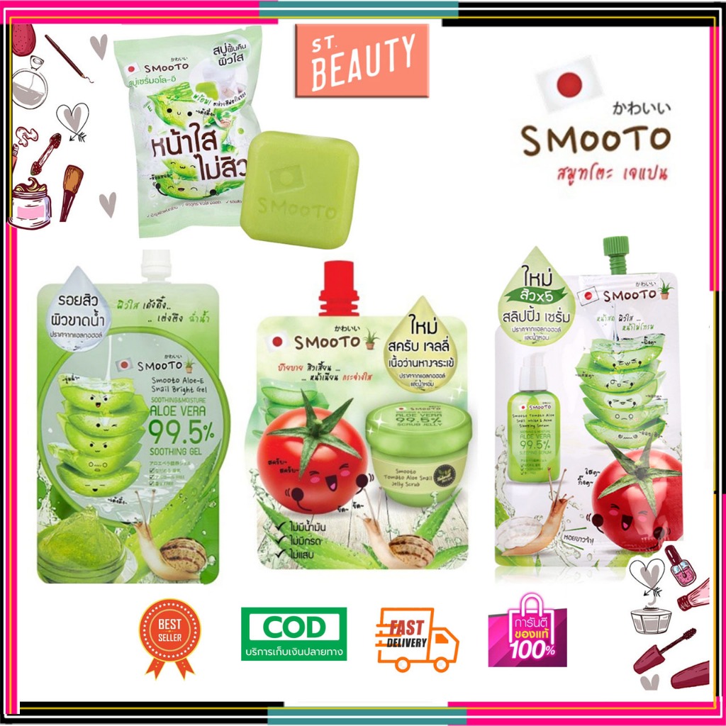 [♥️แท้] Smooto Aloe E สมูทโตะ อโล เจลว่านหางจระเข้ เข้มข้น อโล-อี สเนล ไบรท์ เจล/สครับ 50g/sleeping serum/Acne soap 60g