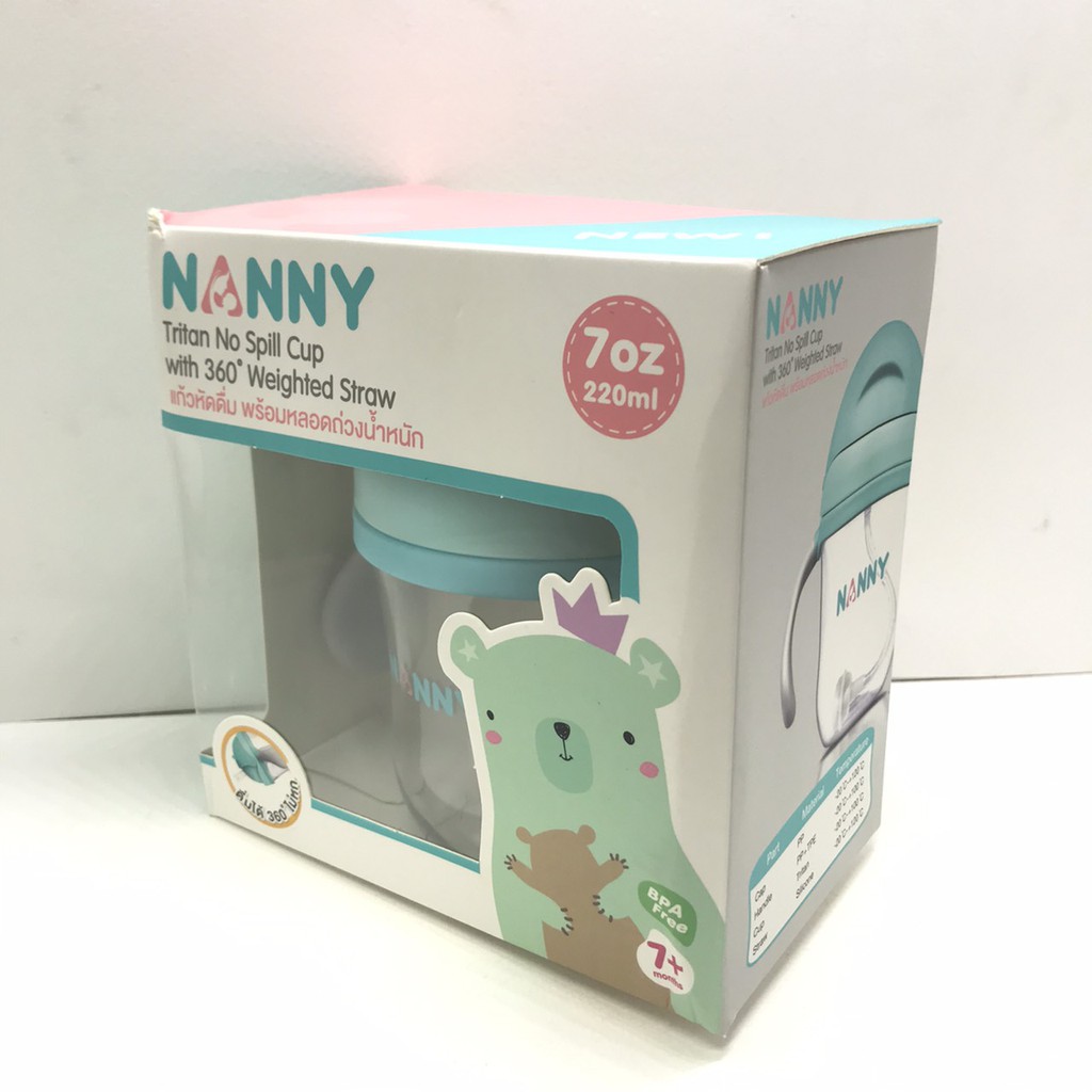 Nanny แนนนี่ แก้วหัดดื่มมีแขนจับ 7ออนซ์ 220 มล. ไม่ดูดไม่ไหล N5732