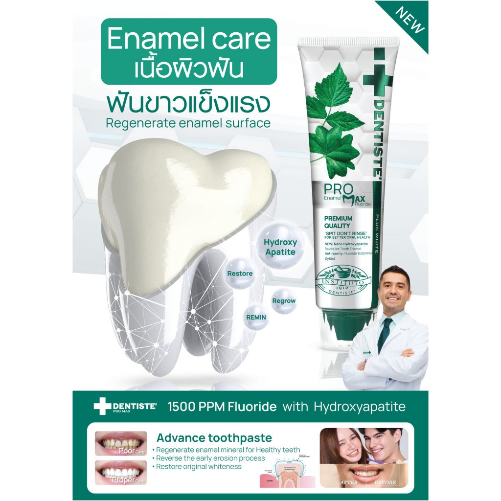 Dentiste’ Pro Max Fluoride 1500 PPM Toothpaste 100g. 67079 ยาสีฟันสูตรแปรงแห้ง ป้องกันฟันผุ ฟื้นฟูผิวฟัน ช่วยให้ฟันขาว