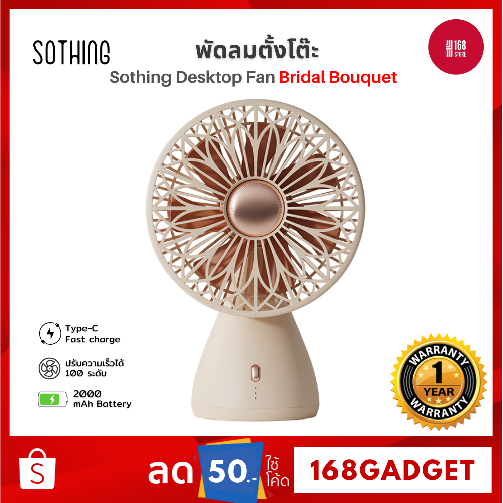 Sothing Desktop Fan Bridal Bouquet พัดลมตั้งโต๊ะ, สำหรับผู้หญิง, ปรับแรงลมได้ 3 ระดับ, หมุน 160 องศา,2000mAh