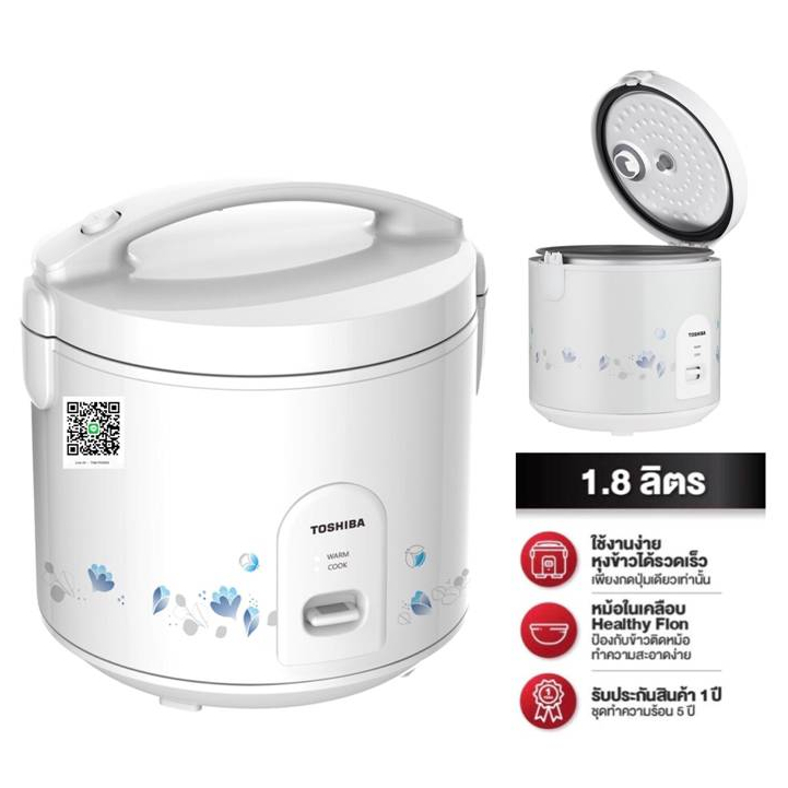 TOSHIBA หม้อหุงข้าว ระบบอุ่นทิพย์ รุ่น RC-T18JH(W) ความจุ 1.8 ลิตร โตชิบา กำลังไฟฟ้า 650 วัตต์
