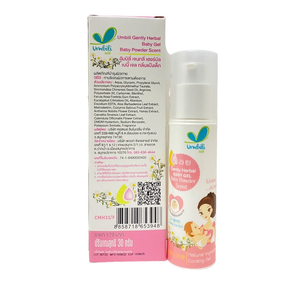 Umbili มหาหิงค์ เบบี้เจล แก้ปวดท้อง แก้ท้องอืด อ่อนโยนต่อผิวเด็ก ขนาด 30g ( กลิ่น แป้งเด็ก )