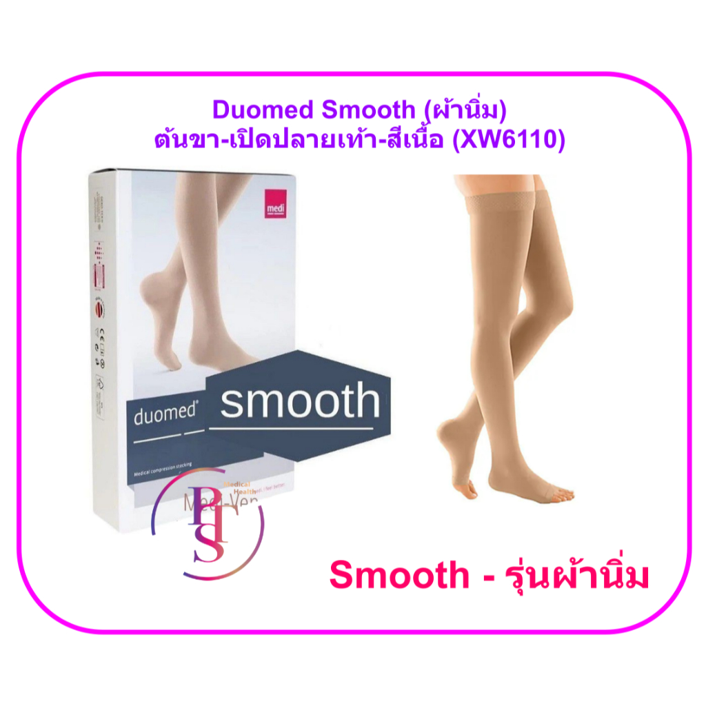 ถุงน่องเส้นเลือดขอด Duomed Smooth ต้นขา-เปิดปลายเท้า-สีเนื้อ Class 2 (22-32 mmHg) (XW6110) (ผ้านิ่มพิเศษ)