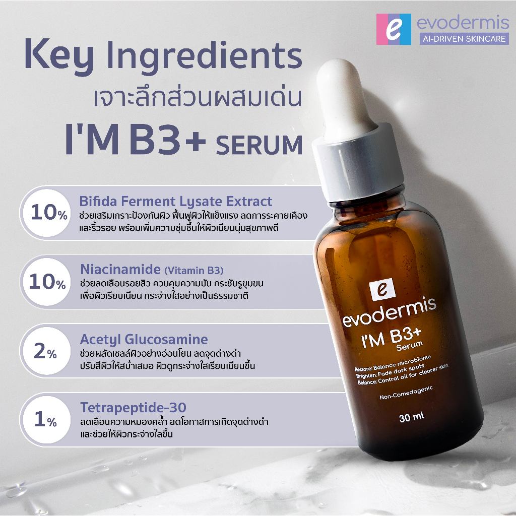 อีโวเดอร์มิส ไอม์ บี 3 พลัส เซรั่ม 30 มล. Evodermis I'm B3+ Serum 30 ml.