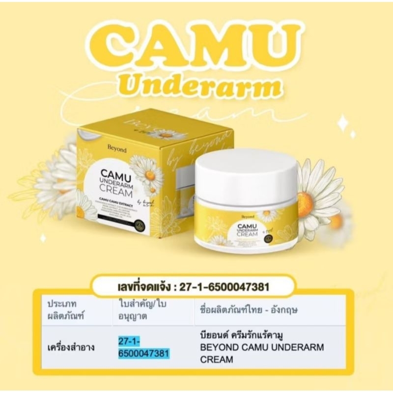ส่งฟรี/มีไลฟ์ บียอนด์ ครีมรักแร้คามูBEYOND CAMU UNDERARM CREAM บอสหนุ่ม ระงับกลิ่น.