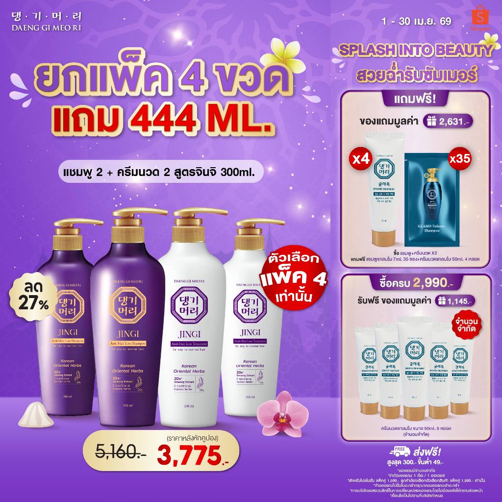 [Combo Set] DAENG GI MEO RI แชม พูลดผมร่วง แทงกีโมรี สูตรจินจิ JINGI Shampoo +Treatment 300 ml