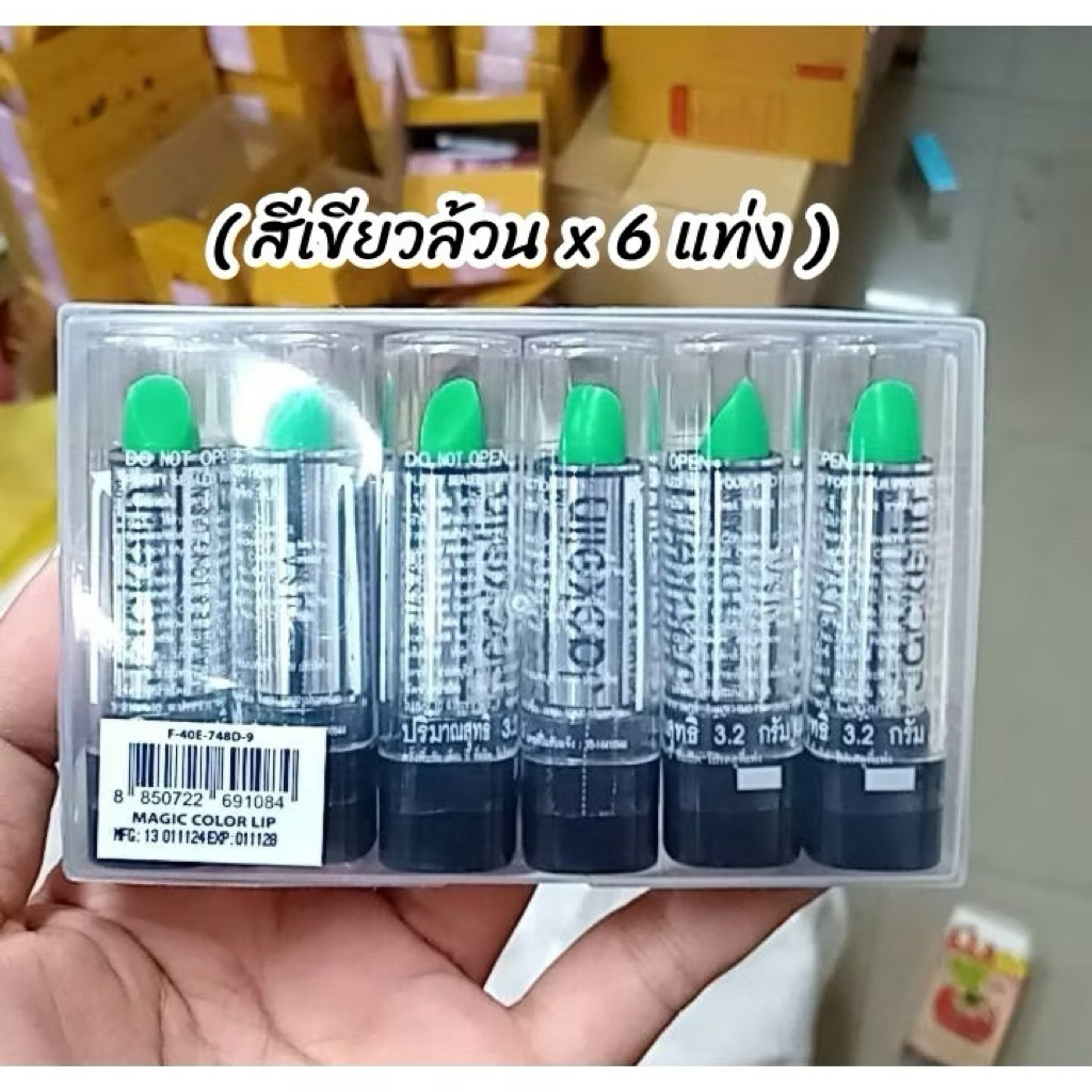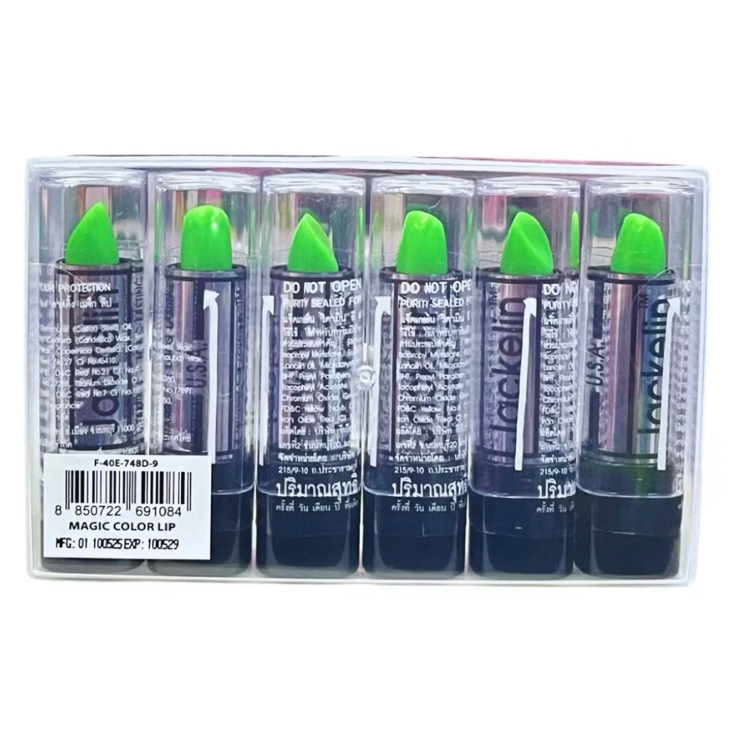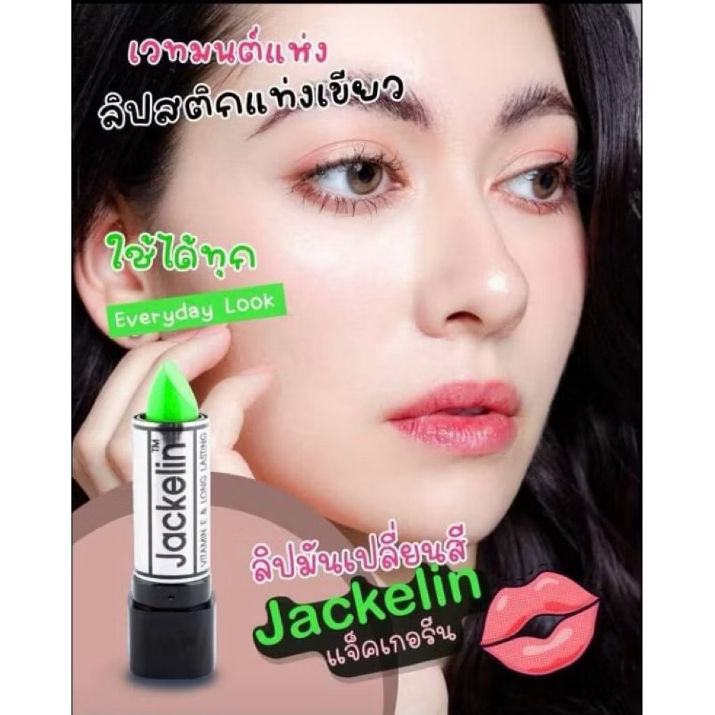 ส่งฟรี/มีไลฟ์ (แพ็ค6แท่ง) ลิปเขียว Jackelin Vitamin E ลิปเปลี่ยนสี