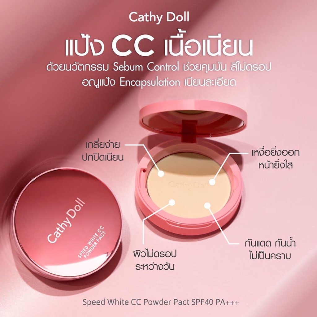 แป้งซีซี แป้งเคที่ดอลล์ สปีดไวท์ ซีซี พาวเดอร์ แพ็ค Cathy Doll CC Speed White X3 Powder Pact SPF40 PA+++ 4.5/12 g.