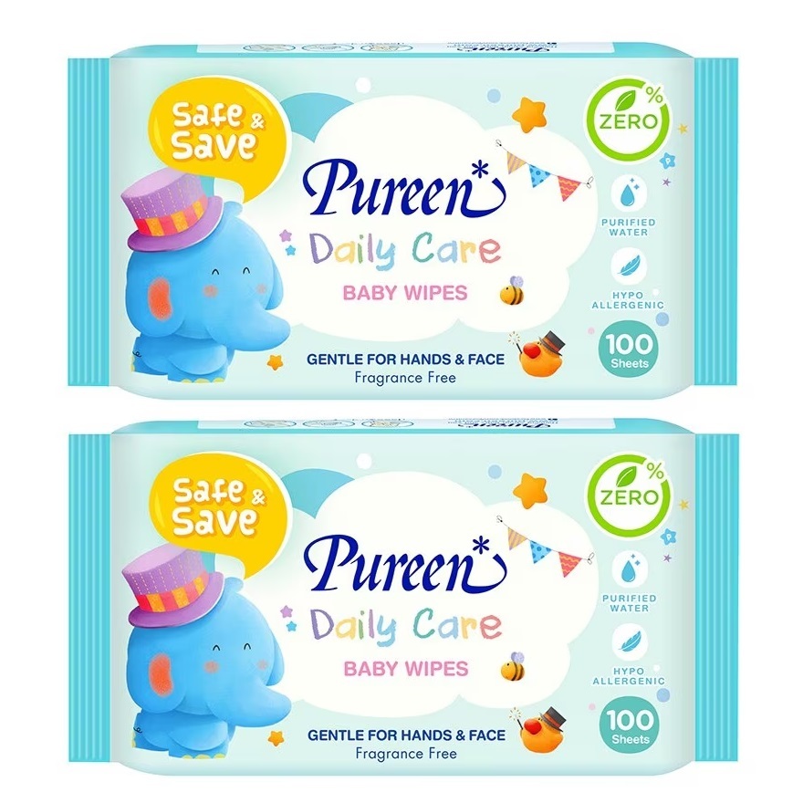 Pureen เพียวรีน เบบี้ไวพส์ เดลี่ แคร์ 100 แผ่น 2 ห่อ