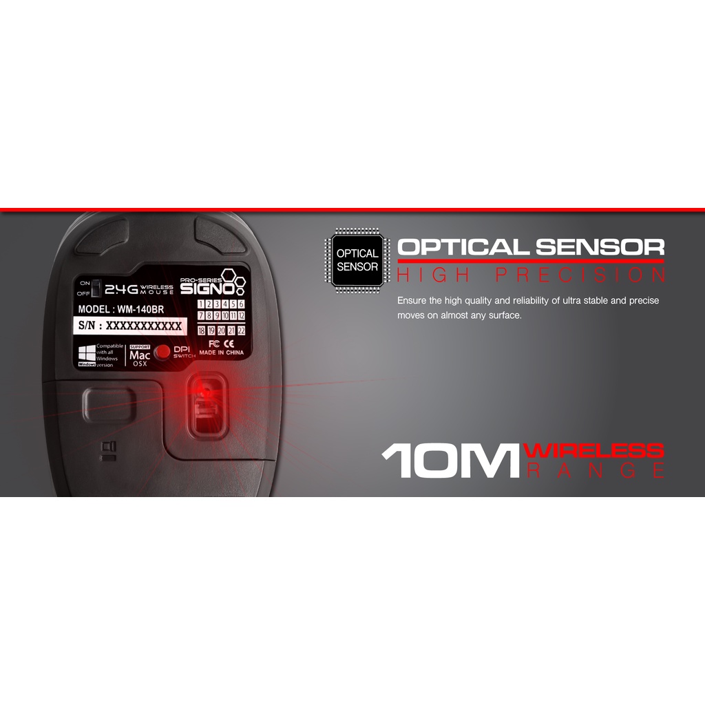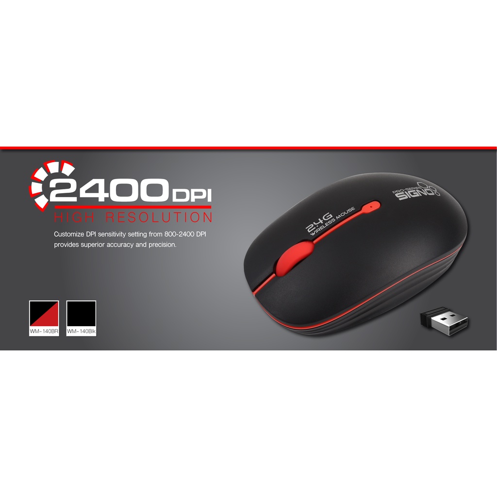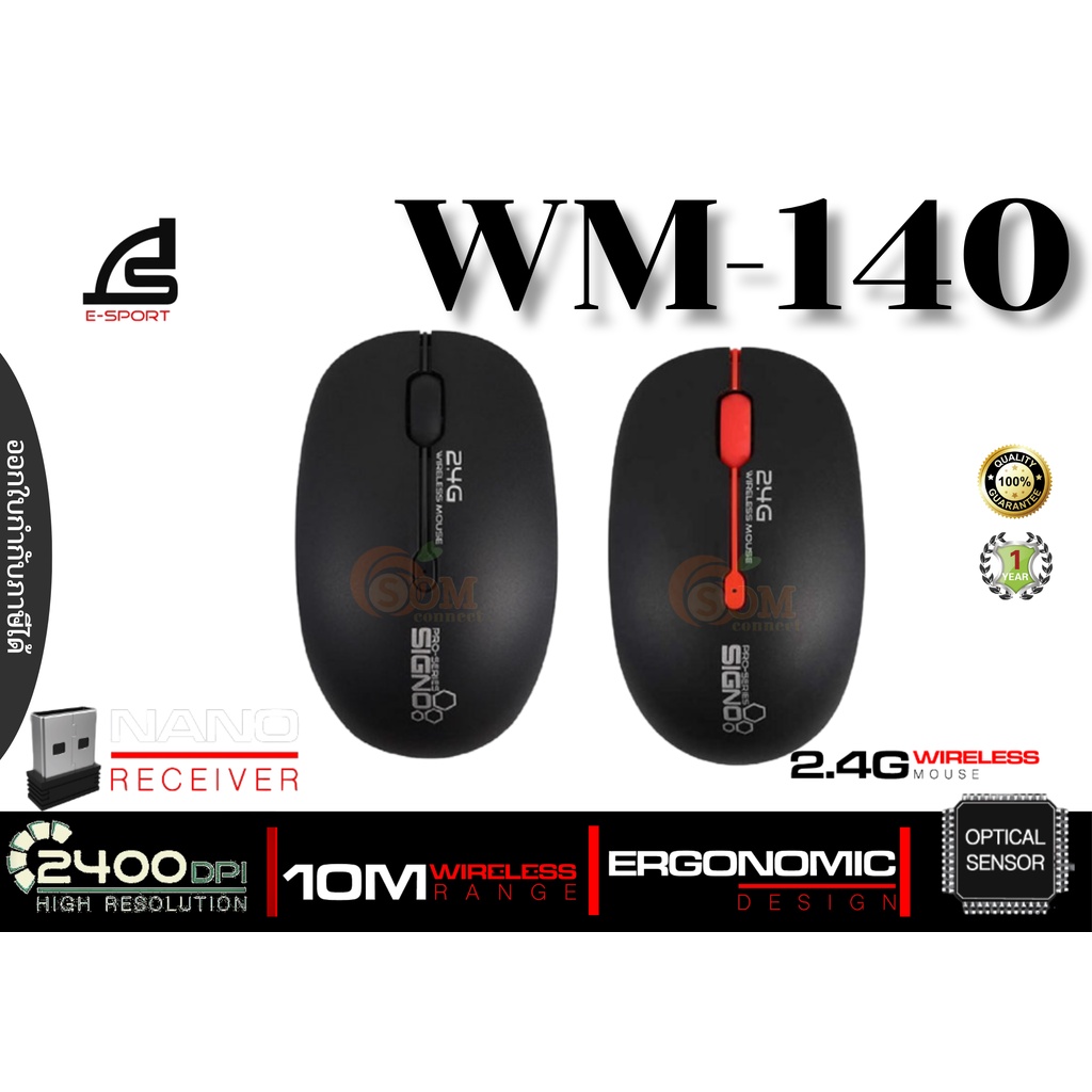 WIRELESS MOUSE (เมาส์ไร้สาย) SIGNO (WM-140) 3 SPEED DPI 800-1600-2400DPI 2.4Ghz 10M. WIRELESS RANGE USB 2.0 (1Y) -ของแท้