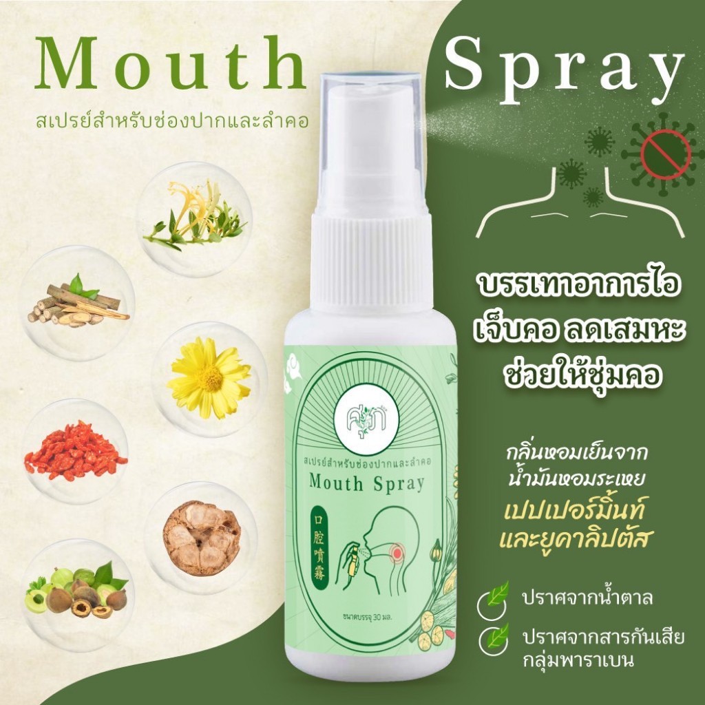ของแท้ ✅ Mouth Spray สเปรย์สมุนไพร สเปรย์พ่นคอ ชุ่มคอ 30 ml.