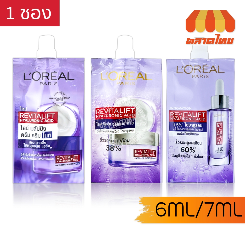(1ซอง) ครีมซอง ลอรีอัล ปารีส รีไวทัลลิฟท์ L'OREAL PARIS REVITALIFT HYALURONIC ACID HYALURON SERUM/ CREAM 6ml./7ml.