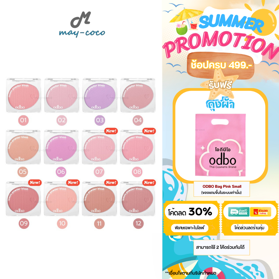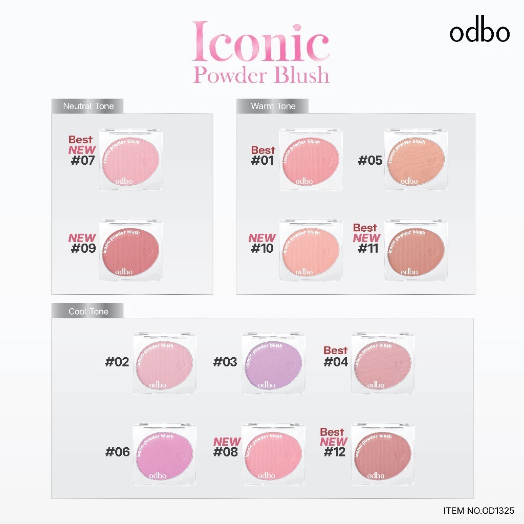 ถูก/แท้/มีไลฟ์ (มีสีใหม่) บลัชออน ODBO Iconic Powder Blush บลัชไอโคนิค บลัชเนื้อฝุ่น ปัดแก้ม เนียนนุ่ม พิกเมนต์แน่น ติดท