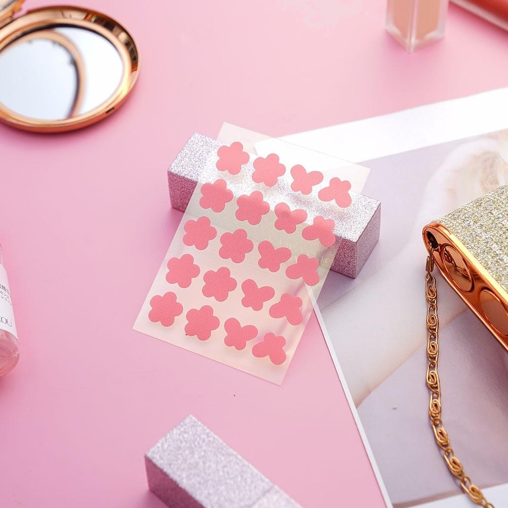 การ ์ ตูนน ่ ารักดอกไม ้ รูปหัวใจสิวแพทช ์ หัวใจสีชมพูผีเสื ้ อความงามสติกเกอร ์