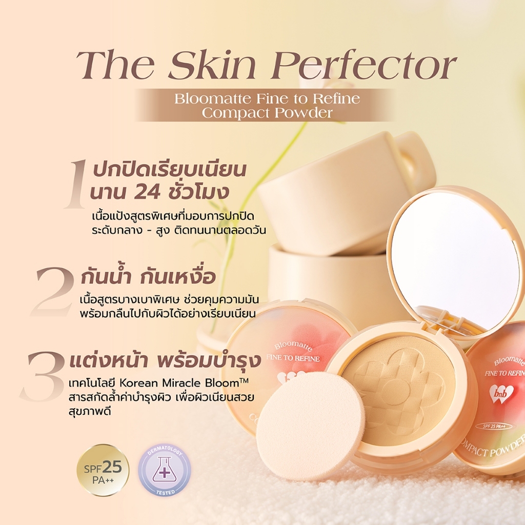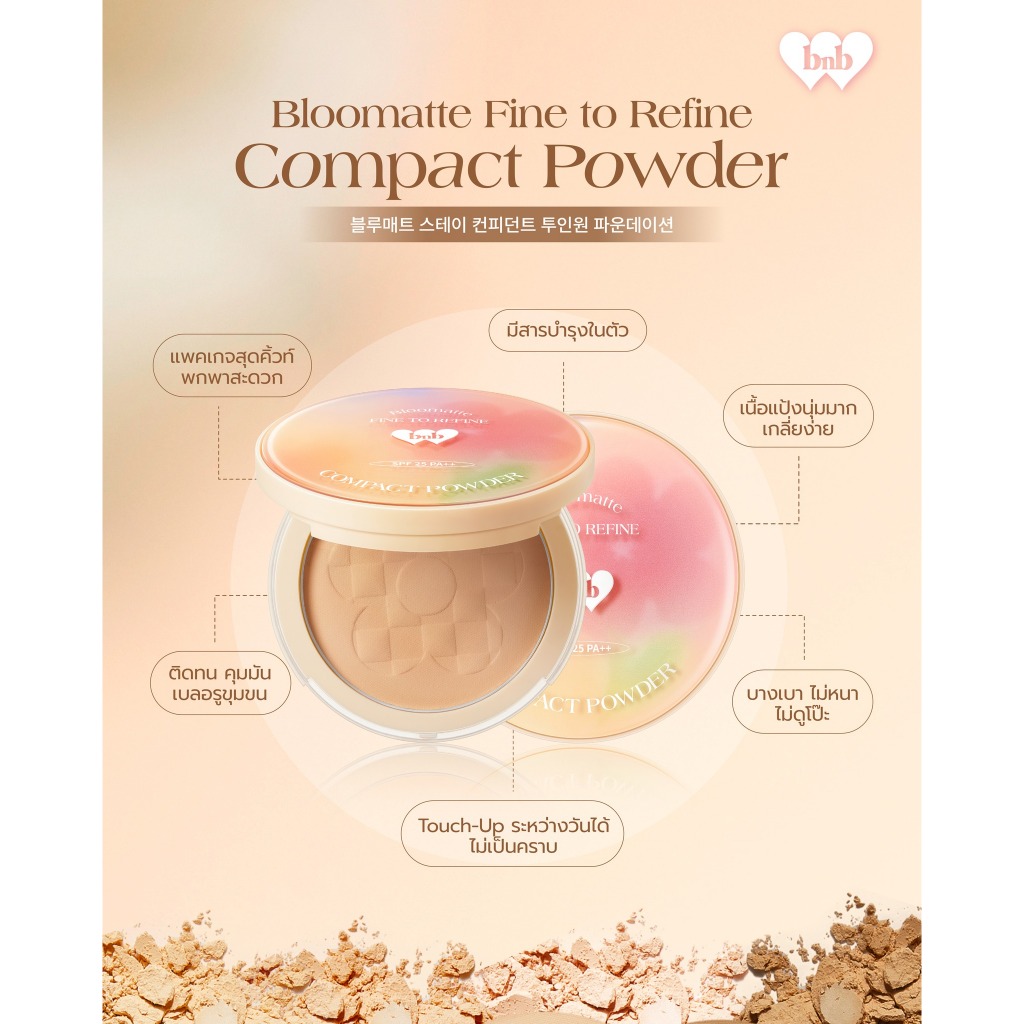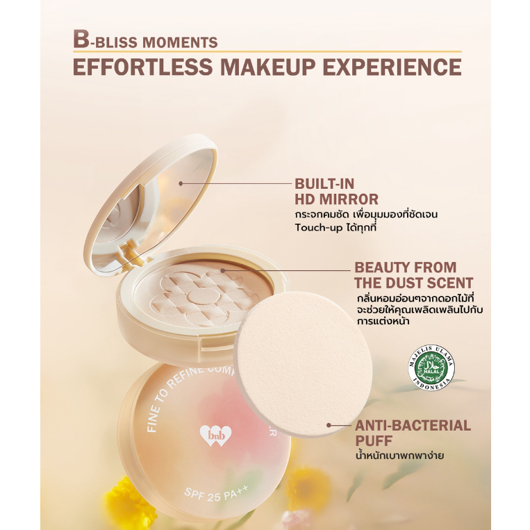 ถูก/แท้/มีไลฟ์ แป้ง Barenbliss Fine to Refine Compact Powder SPF 25 PA+++ แป้งพัฟ แป้งตลับ เกาหลี คุมมัน