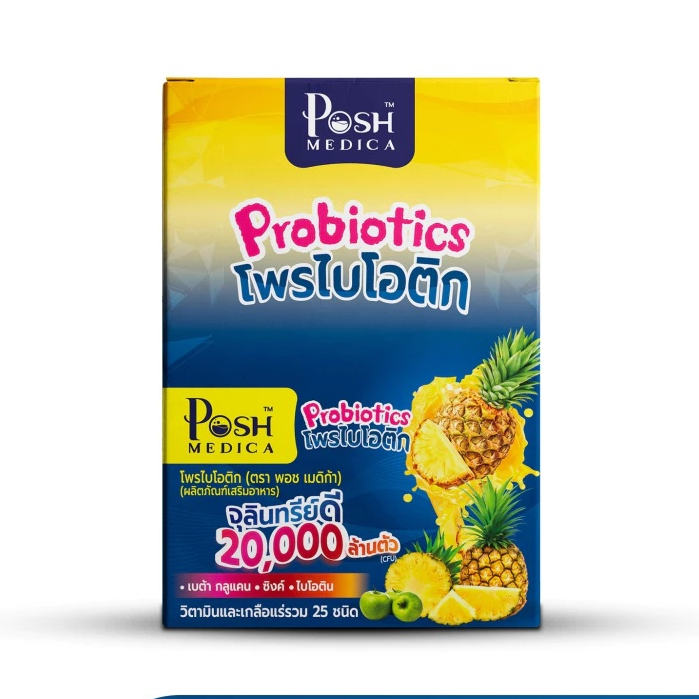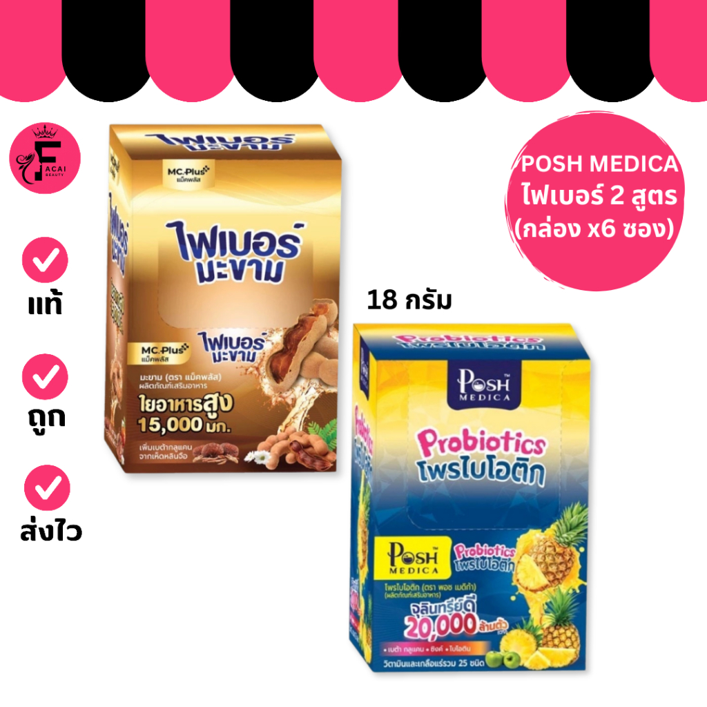 (1 กล่อง 6 ซอง) Posh Medica ไฟเบอร์มะขาม/โพรไบโอติกสับปะรด (ปริมาณ 18 กรัม)