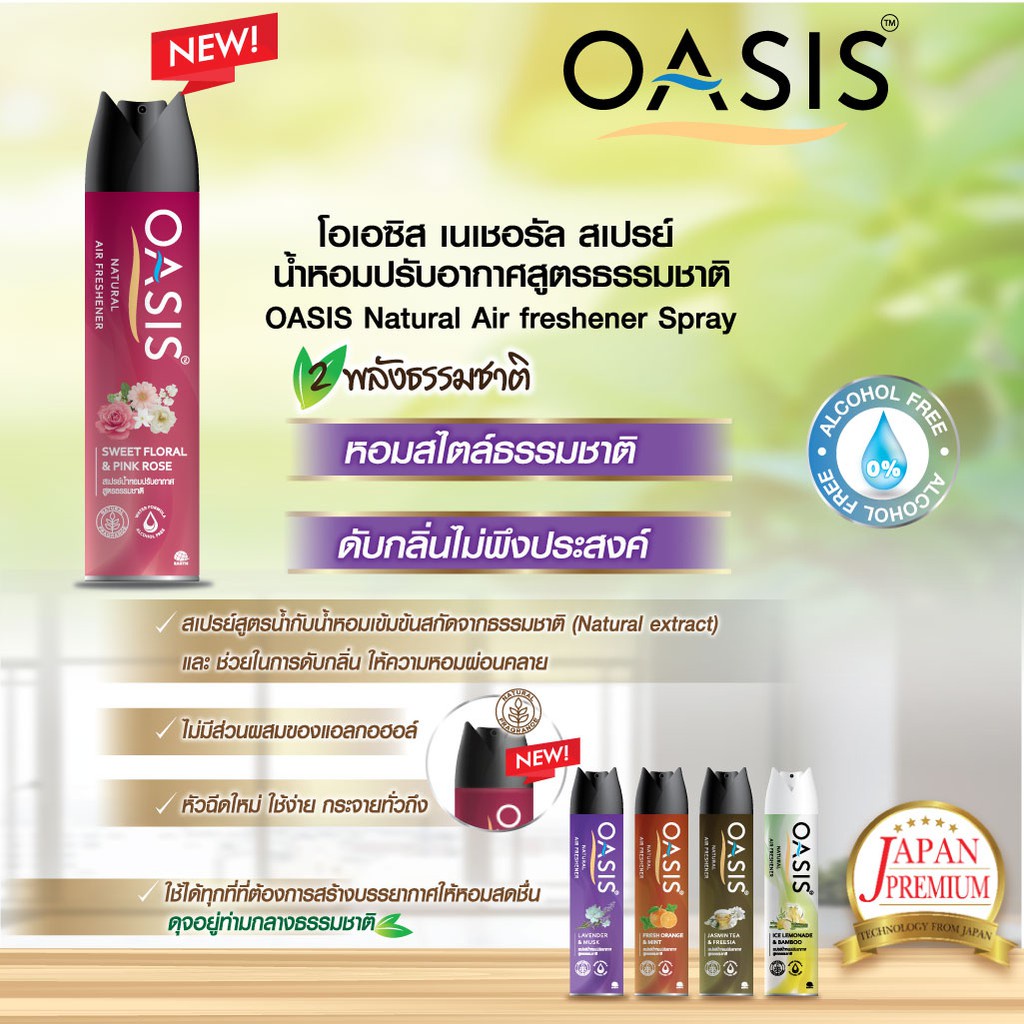โอเอซิส เนเชอรัล สเปรย์ 320 มล. กลิ่นเฟรชออเร้นจ์ & มินต์/Oasis NATURAL SPRAY 320 ML FRESH ORANGE & MINT
