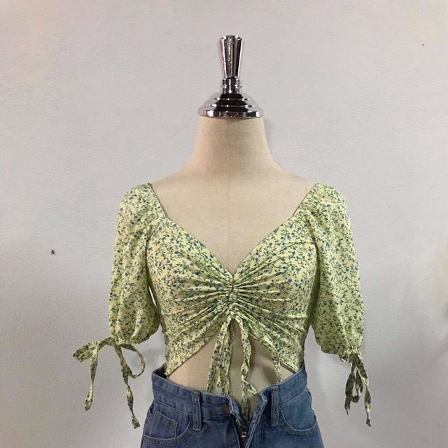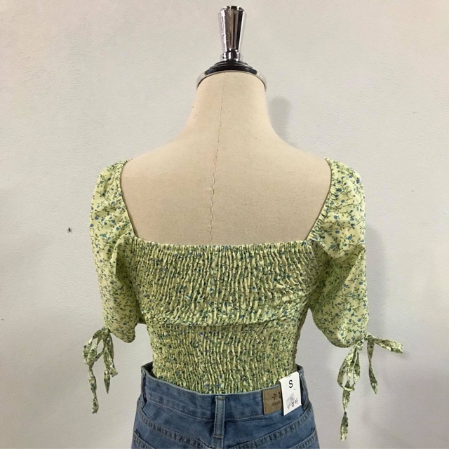 เสื้อครอปรูดหน้า สีเขียวอ่อนๆลายดอกเล็กๆน่ารักมากคะ งานมือ1