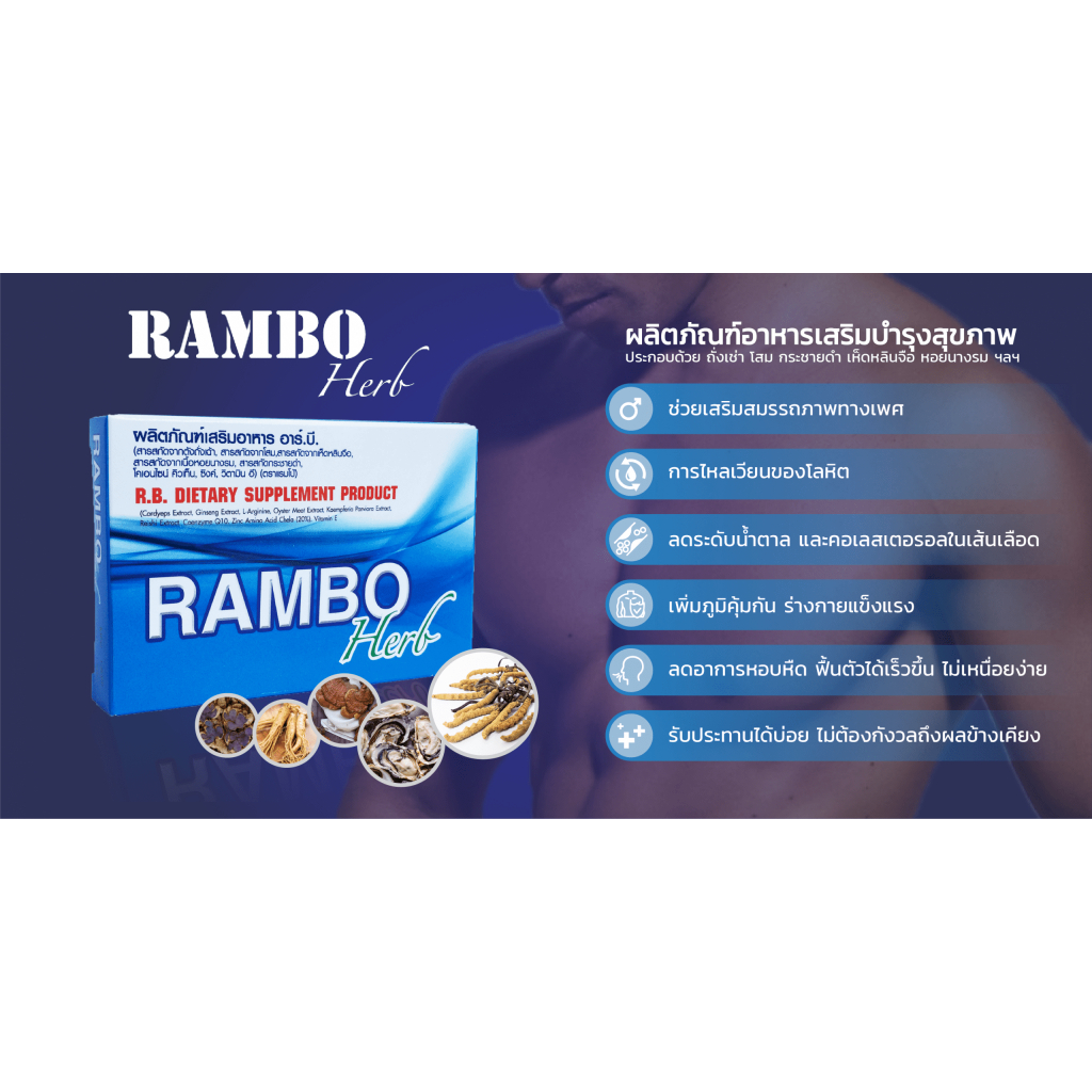 Rambo Herb แรมโบ้ อาหารเสริมอาร์.บี สมุนไพร 4 แคปซูล/กล่อง อาหารเสริม ท่านชาย #10485