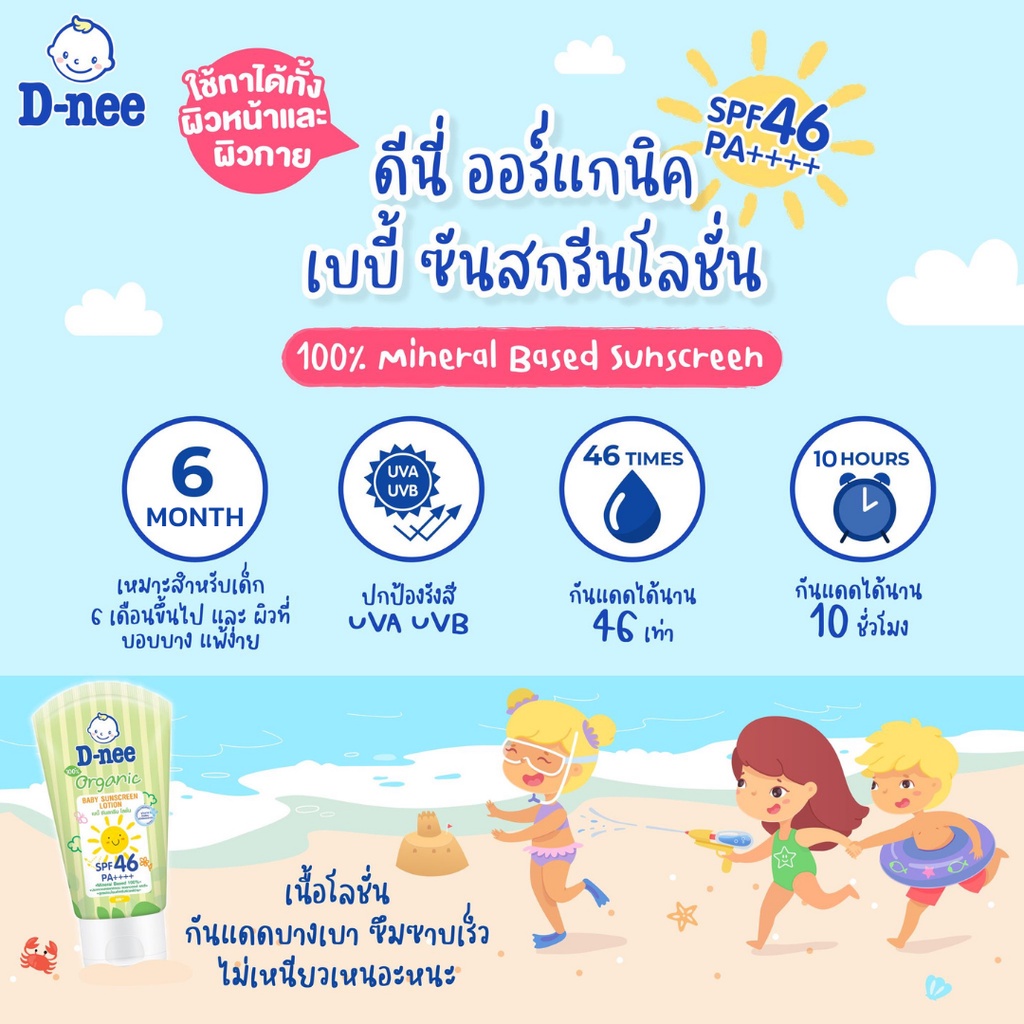 D-nee โลชั่นกันแดด สำหรับเด็ก SPF46/50 PA++++ (ข นาด 50มล.) โลชั่นกันแดดเด็ก ครีมกันแดดสำหรับเด็ก
