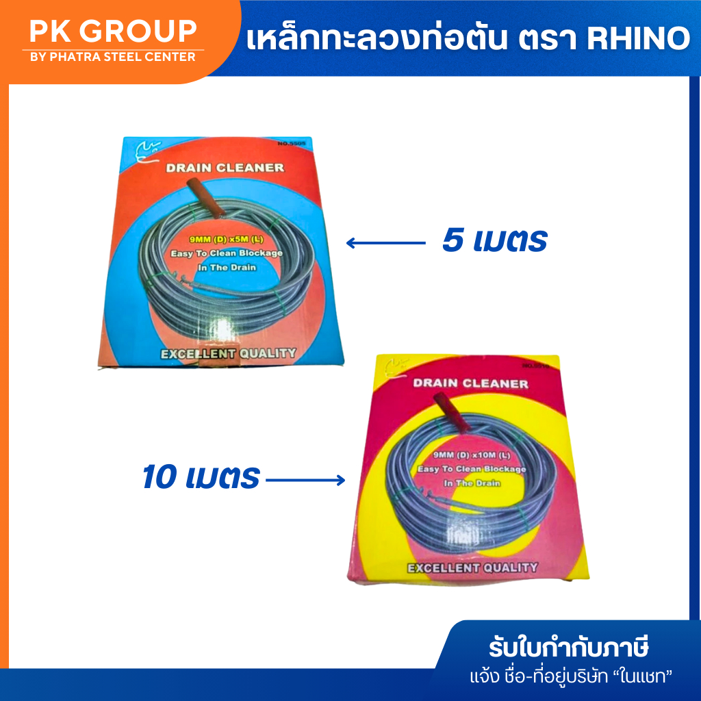 Rhino เหล็กทะลวงท่อตัน ขนาด 3, 5, 10 เมตร งูเหล็ก แก้ท่อระบายตัน ส้วมตัน สปริงทะลวงท่อ (1 อัน)