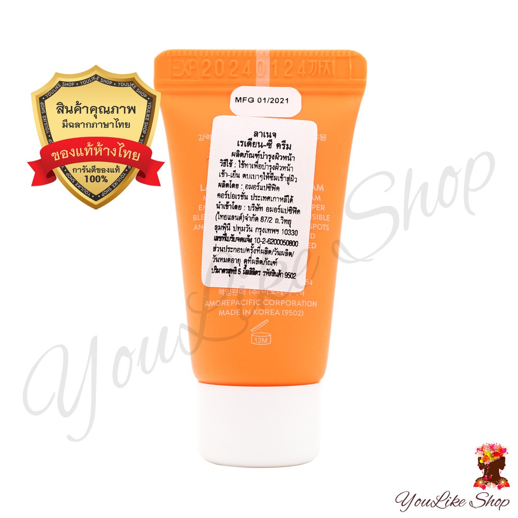 Laneige Radian-C Cream (5 ml) ครีมบำรุงผิว สูตรแก้ปัญหาผิวคล้ำ รอยแดง เผยผิวกระจ่างใส [Radian C RC]