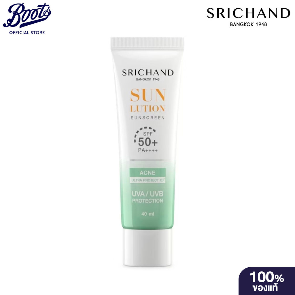 Srichand Sunlution Acne Care Sunscreen SPF50+ PA++++ 40ml ศรีจันท์ กันแดด ครีมกันแดด