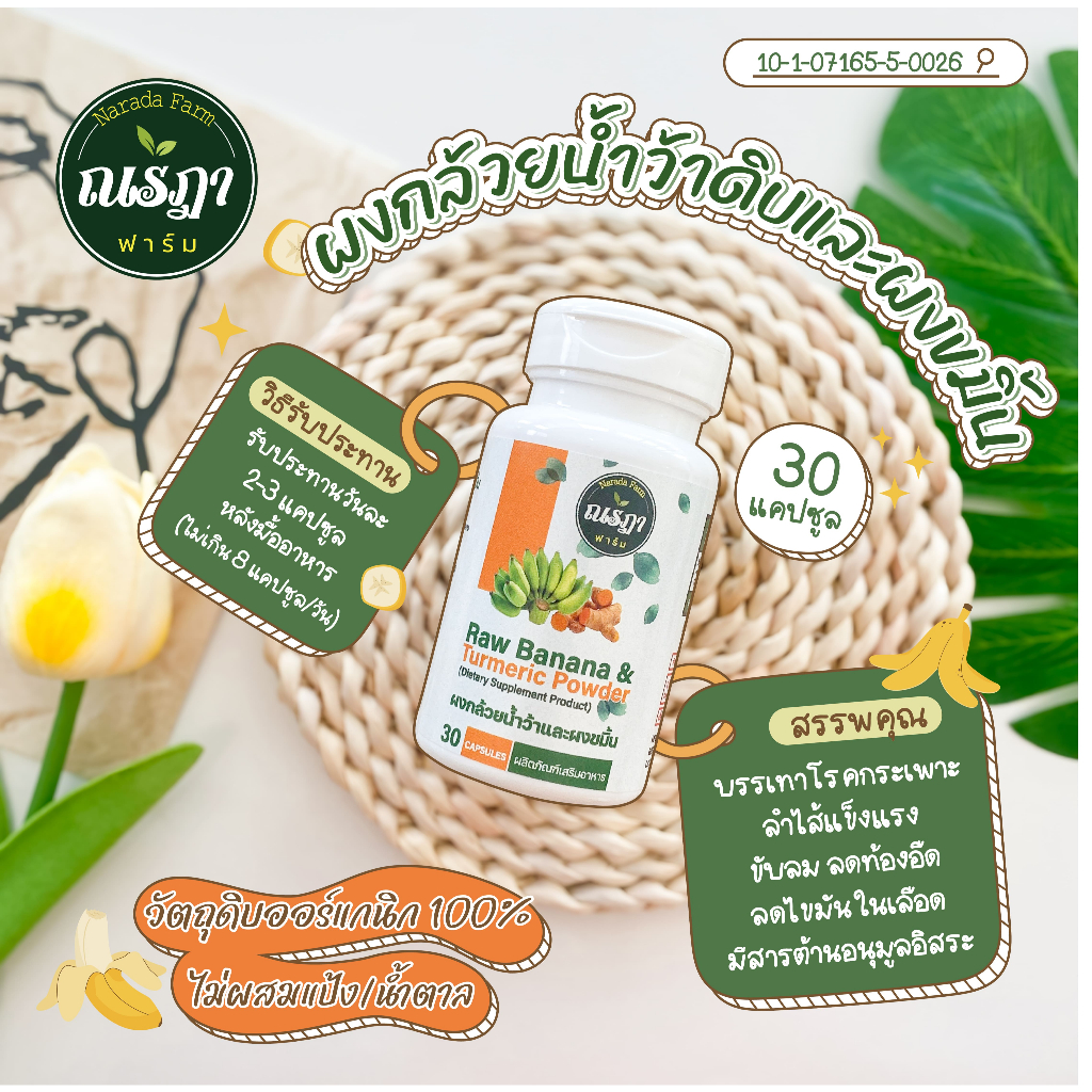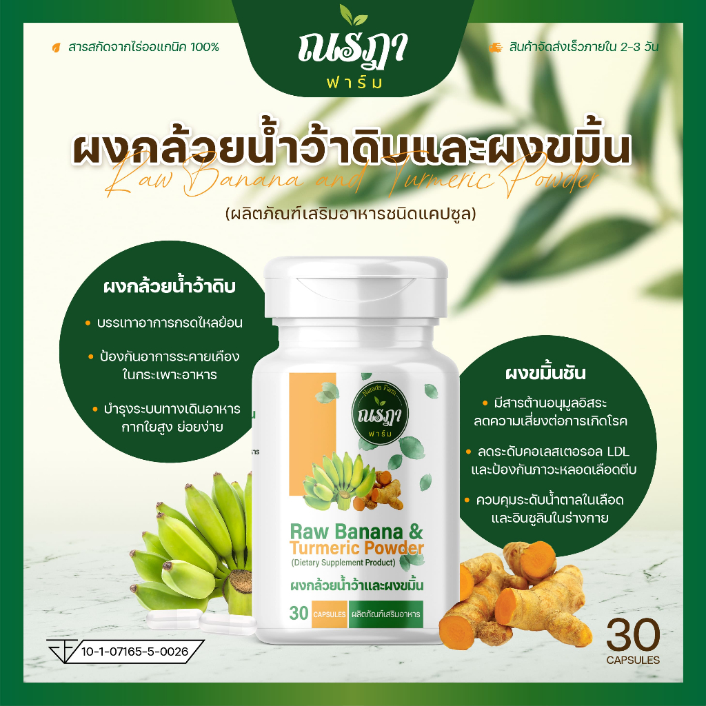 💊💊ผงกล้วยน้ำว้าดิบ ผสม ผงขมิ้นชัน ออร์แกนิค 100% ชนิดแคปซูล บรรจุ 30 แคปซูล 💊💊