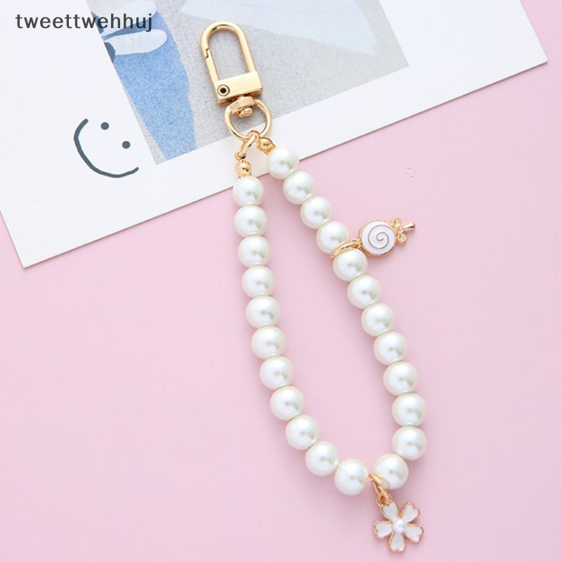 Tw วินเทจ แฟชั่นเกาหลี มุก พวงกุญแจ ผู้หญิง ทอง โลหะ โซ่ พวงกุญแจ huj